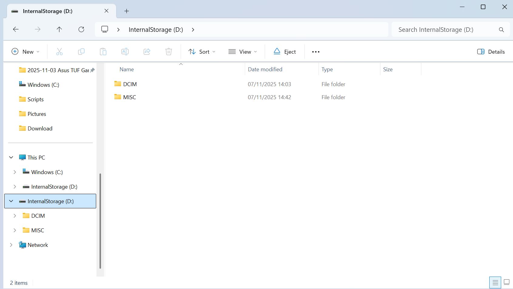 You can transfer videos and photos via the app (transmitter module) or simply connect the Neo 2 to your PC with a USB-C cable. The internal storage (now 49 GB, up from 22 GB) appears as a drive in your browser, and you can drag and drop files directly.