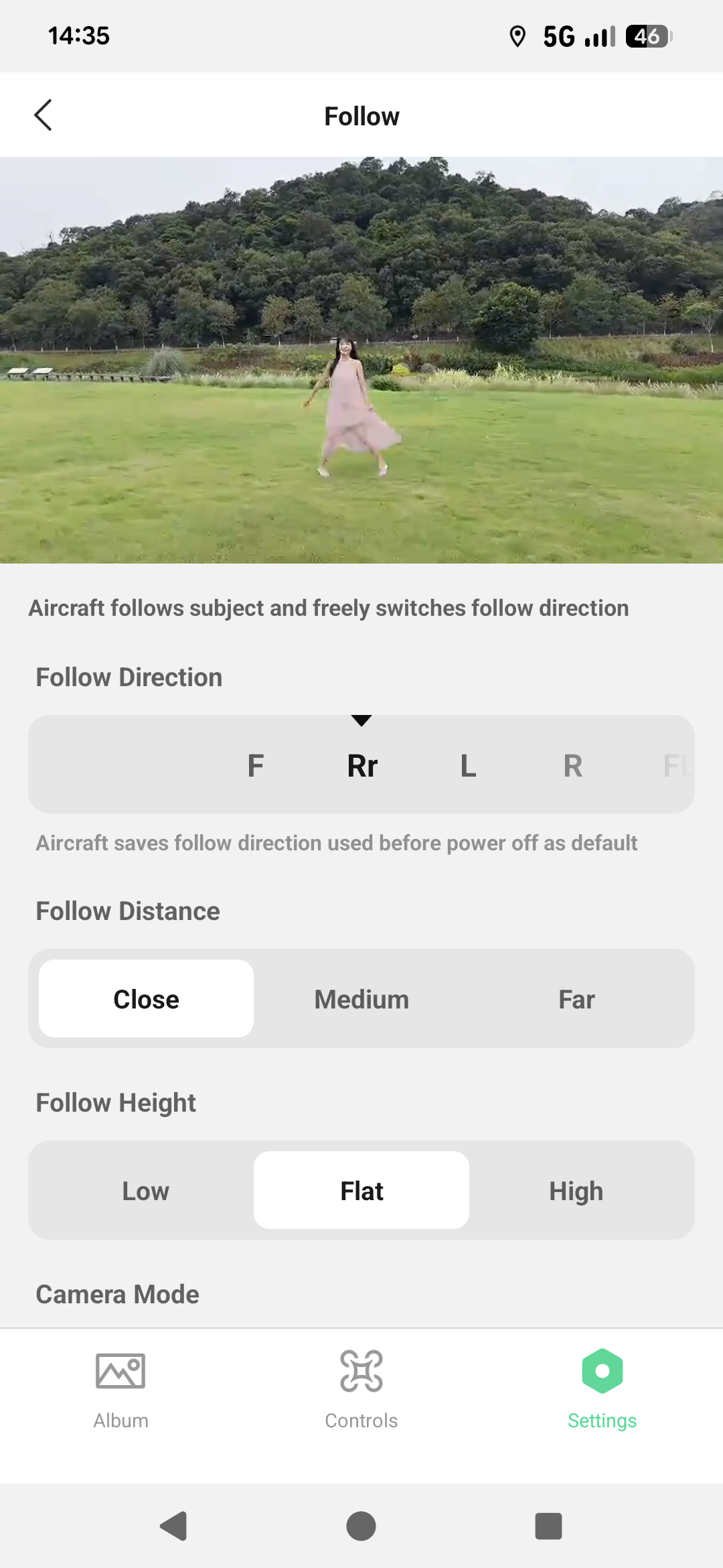 You can now also shoot in vertical 2.7K mode. A new mini display on the left front shows the current flight mode (e.g., Follow).