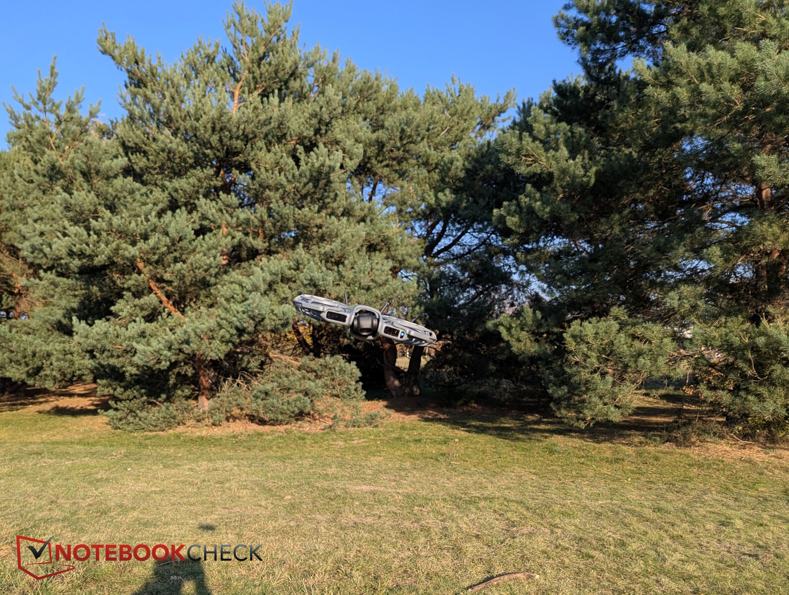 The app includes several flight tutorials for beginners. We first tested the new obstacle detection: activating Follow Mode (speed adjustable in-app), we walked through low-hanging branches of pine trees. The drone followed reliably and avoided obstacles well – though sometimes the footage looked a bit jerky when the drone had to catch up after detouring.