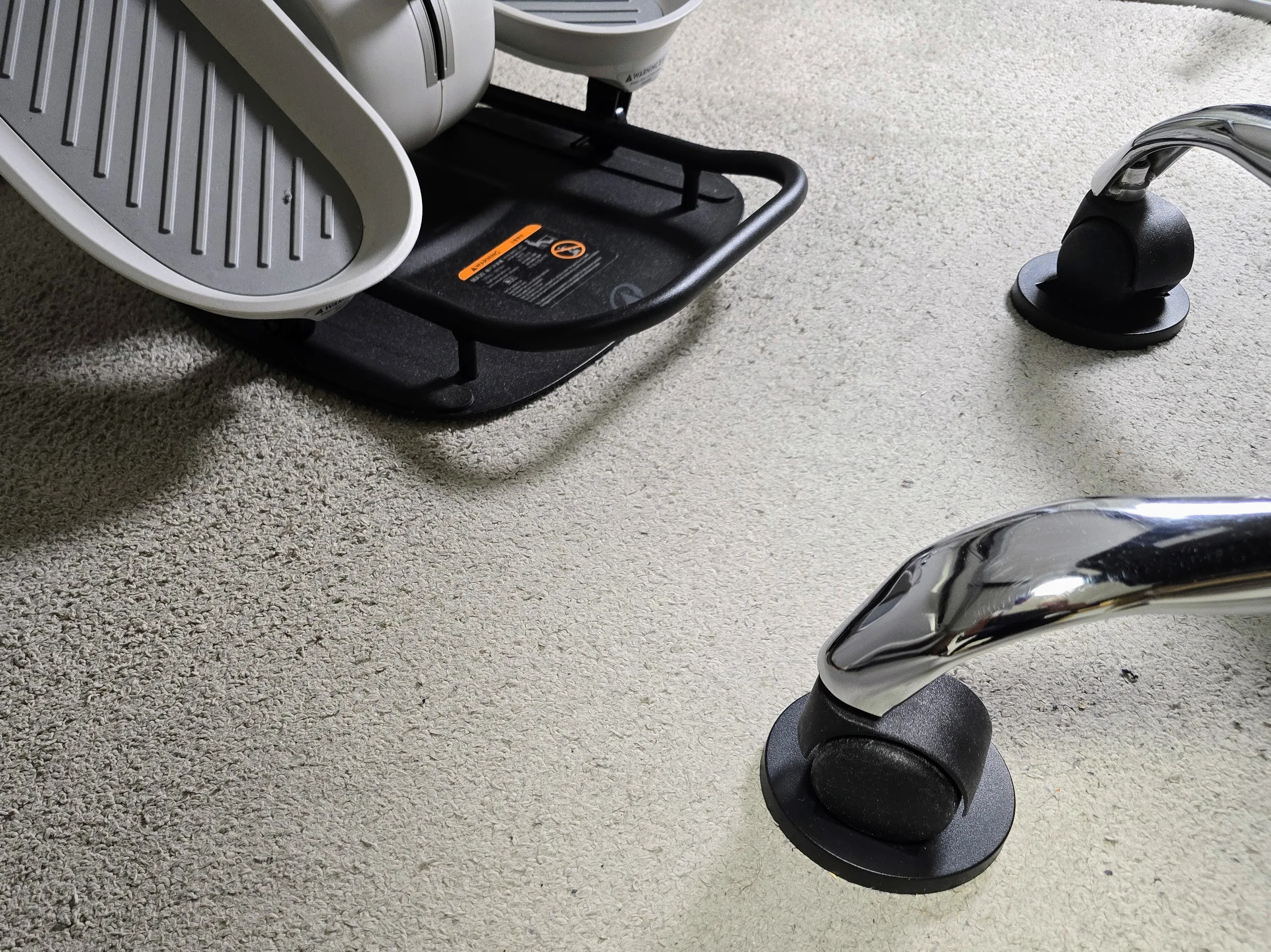 The biggest challenge with the Decathlon Active Desk isn’t assembly or operation, but getting it positioned correctly under a desk. Thanks to its large handle and built-in casters, the mini cross trainer is easy to move. The real problem is the office chair: one with casters tends to roll away as soon as you start pedaling.