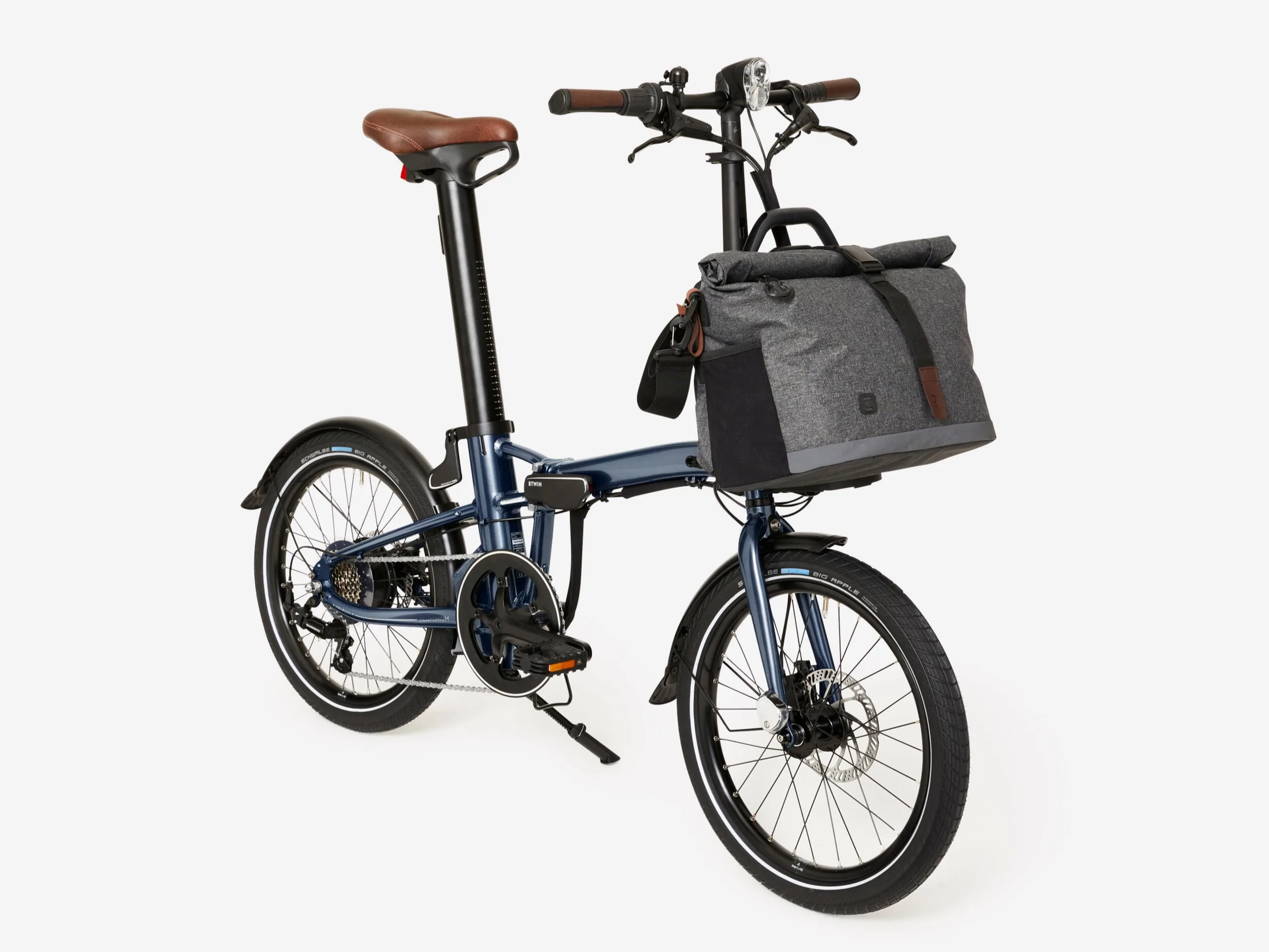 The E-Fold 900 has a Vision Industry brushless motor at the rear, providing three assistance modes and a separate walk mode. The motor has 250W power and up to 35Nm torque, with a cadence sensor ensuring the assistance matches your needs. A 252Wh battery, stored in the seat post, is expected to provide up to 55 km (~34 miles) assisted range. Plus, the 7-speed e-bike uses a Shimano Tourney drivetrain alongside Tektro T275 hydraulic disc brakes and 20” Schwalbe Big Apple tires. Accessories include a small handlebar-mounted display showing your speed and remaining battery, alongside front and rear lights. Optional extras include a luggage rack and a 25L bicycle bag.