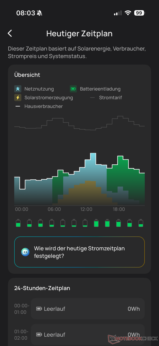 In addition to the things already mentioned, AI also plans further things for optimal energy distribution, including the prediction of solar power generation. A Delta 2 Powerstation can also be charged when there is surplus solar energy. EV integration is to follow. The aim is to maximize profits, although this only really makes sense in conjunction with dynamic electricity tariffs and low-cost charging of the batteries via the electricity grid.