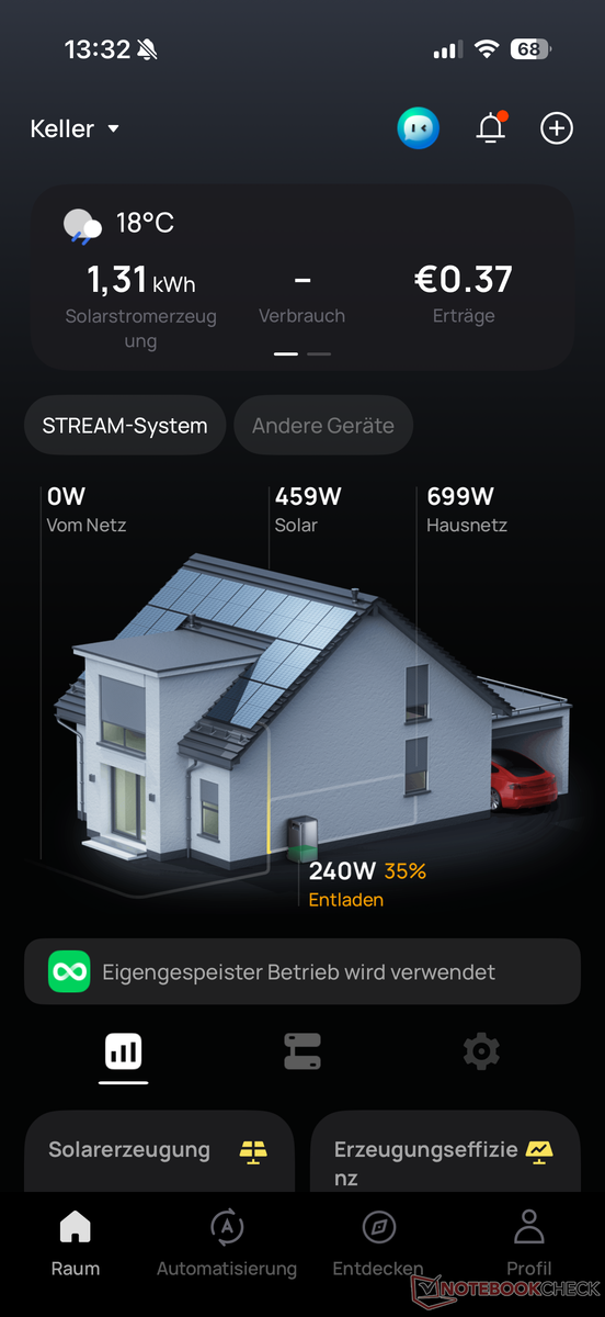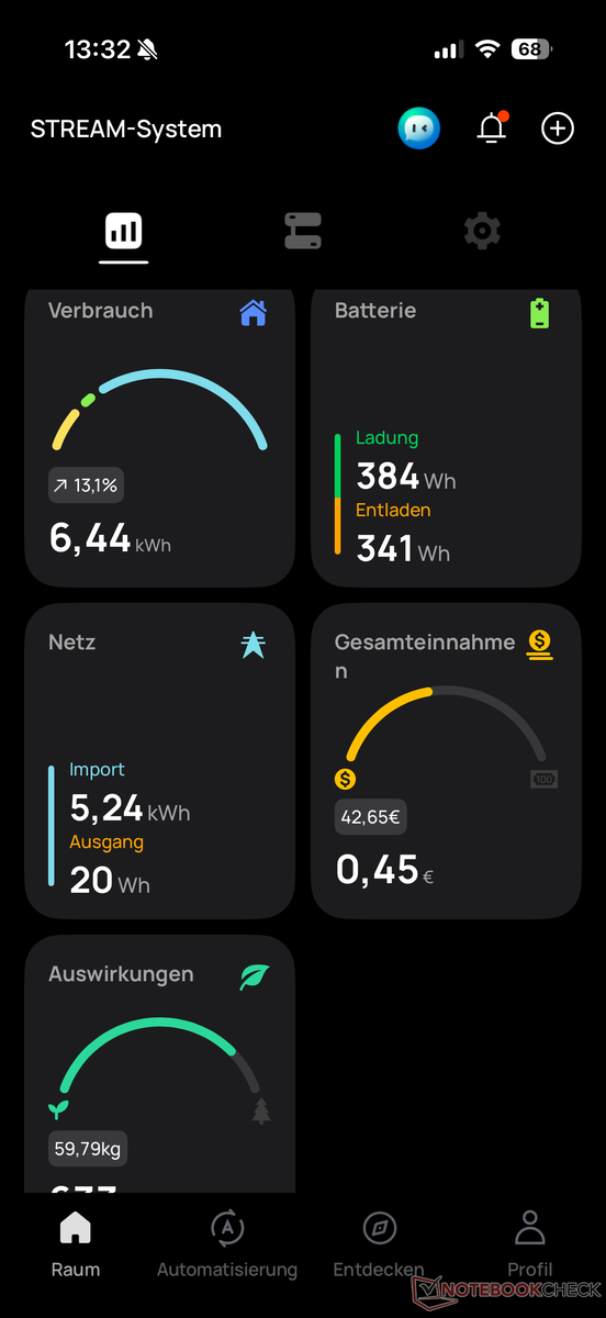 The EcoFlow app is essentially the control center for the Stream system. It can be used to make various settings and view current values such as PV production, storage levels and consumption. Visually, the EcoFlow app makes a smart impression. However, the functionality is of course even more important.