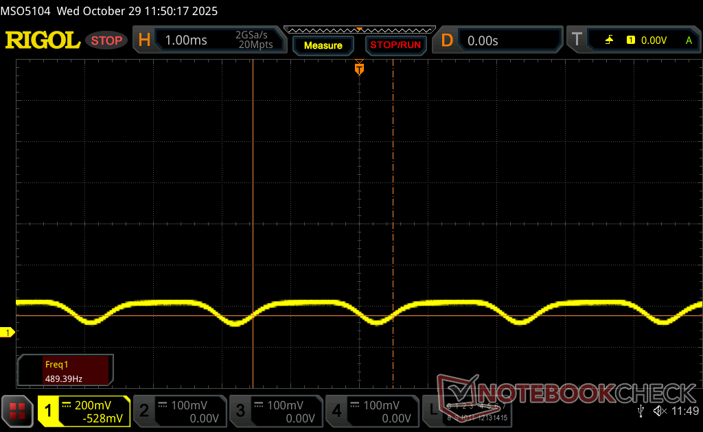| Screen flickering / PWM detected | 490.8 Hz Amplitude: 35 % | ≤ 100 % brightness setting | |