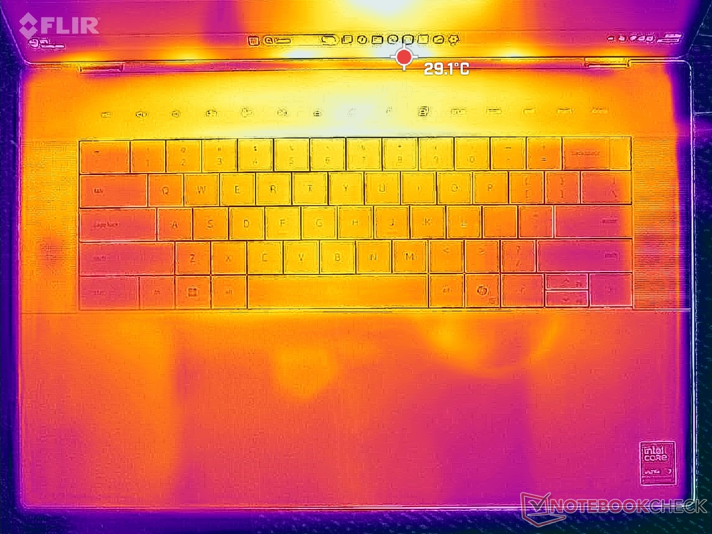 (+) The palmrests and touchpad are cooler than skin temperature with a maximum of 28.6 °C / 83.5 F and are therefore cool to the touch.