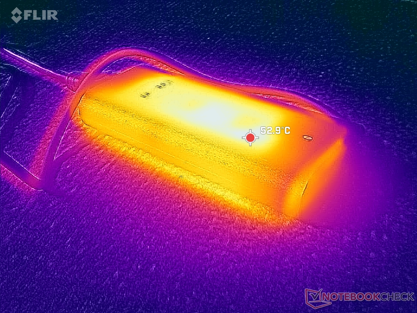 Idling on desktop can draw as low as 6 W when on Power Saver mode with the iGPU active or up to 33 W on Performance mode with the dGPU active and the OLED screen displaying mostly white colors (such as when browsing). Consumption when running more demanding loads is otherwise similar to last year's model if not slightly less for improved performance-per-watt especially since the Dell 16 Premium ships with the same 130 W USB-C AC adapter (~12.8 x 5.5 x 2.3 cm) as before.