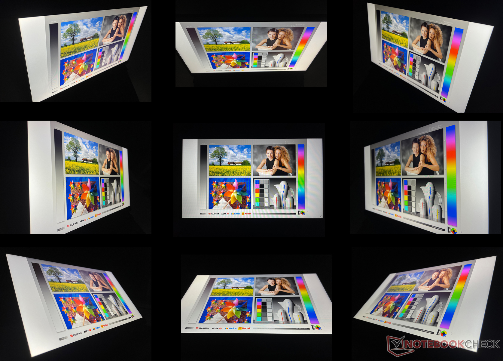 The IPS panel offers the expected high viewing-angle stability. Therefore, content is also legible from very oblique viewing angles. However, the display's average brightness of around 270 cd/m² is suitable at most for using the device outdoors if you're in the shade. It would be nice if the panel were brighter.