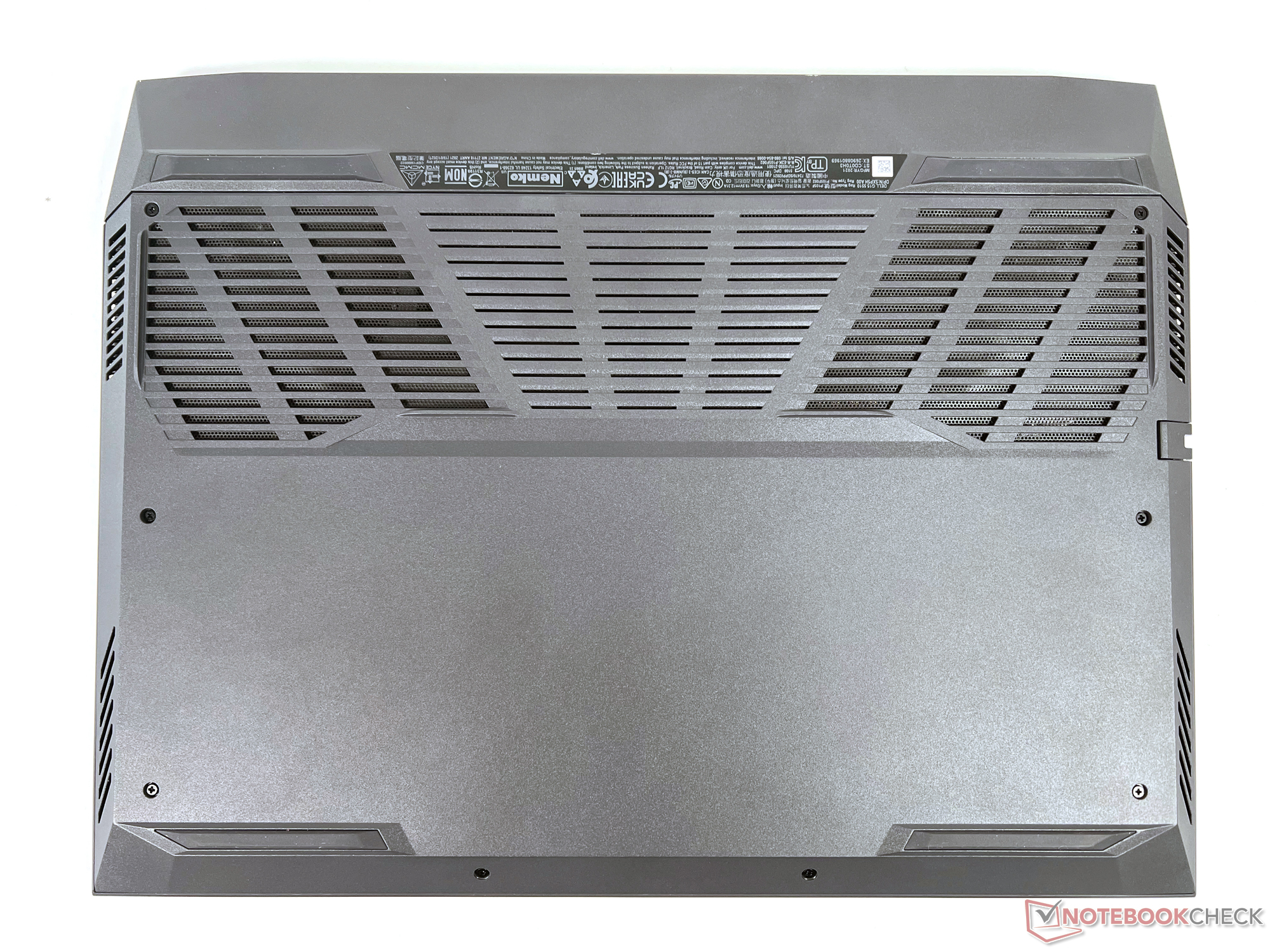 The internal components reach temperatures of over 90 °C (~194 °F) under full load. It goes without saying that the case is also affected by this. As usual, the device gets particularly hot in the areas in front and behind the display, where not only the hardware is installed, but also the fan outlets for the warm waste air are located. The laptop's bottom in particular reaches over 50 °C (~122 °F) there during gaming. Gaming in shorts and with the device on the lap will quickly become ("too") hot.
