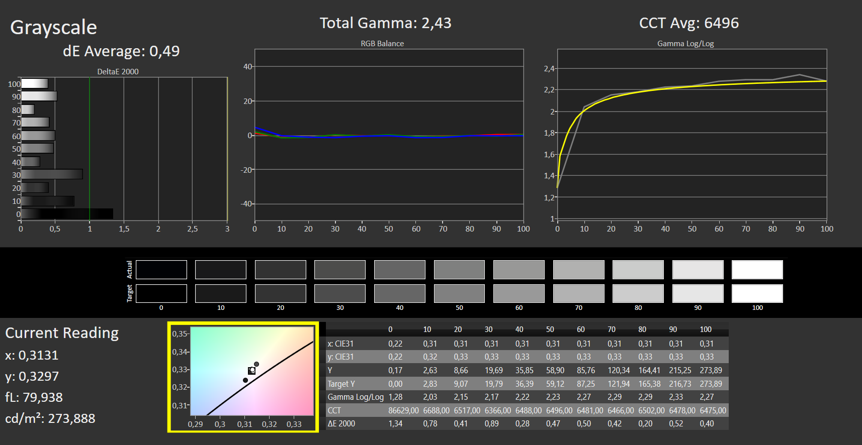 ΔE Greyscale Calman: 4.85 | ∀{0.09-98 Ø5}