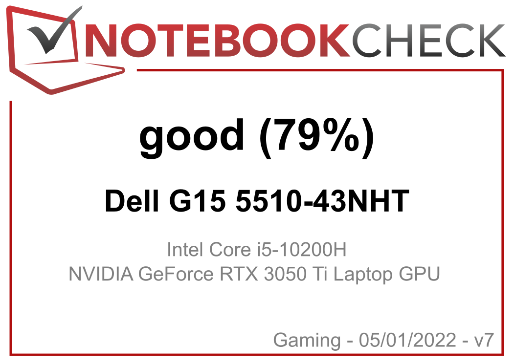 | 79.1 % v7 (old) | 05 / 2022 | Dell G15 5510-43NHT i5-10200H, GeForce RTX 3050 Ti Laptop GPU | 2.5 kg | 23.33 mm | 15.60" | 1920x1080 | |