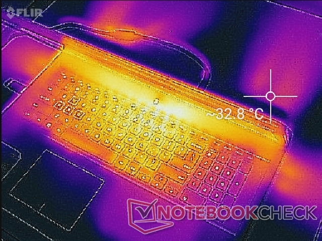 (+) The palmrests and touchpad are cooler than skin temperature with a maximum of 31.2 °C / 88.2 F and are therefore cool to the touch.