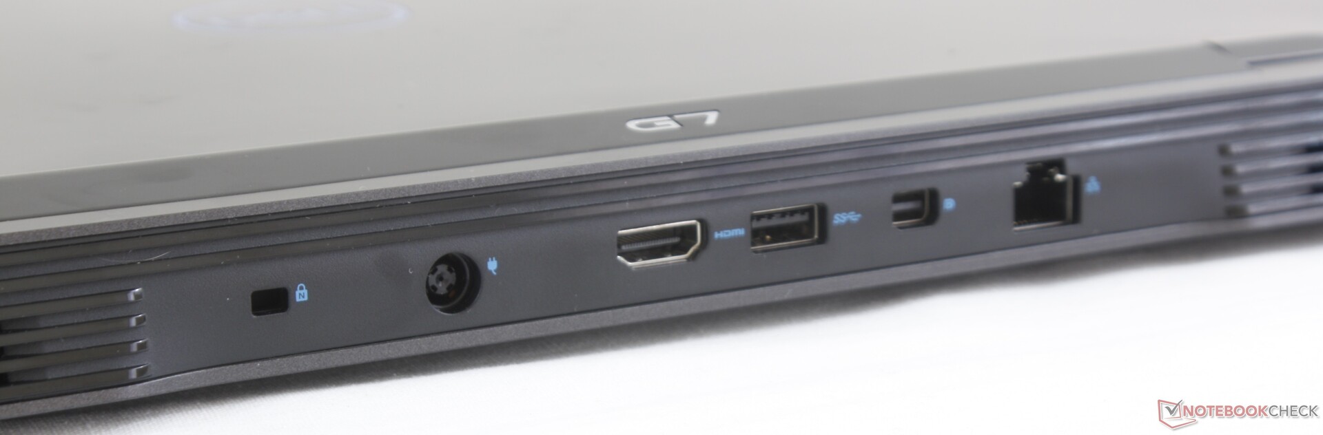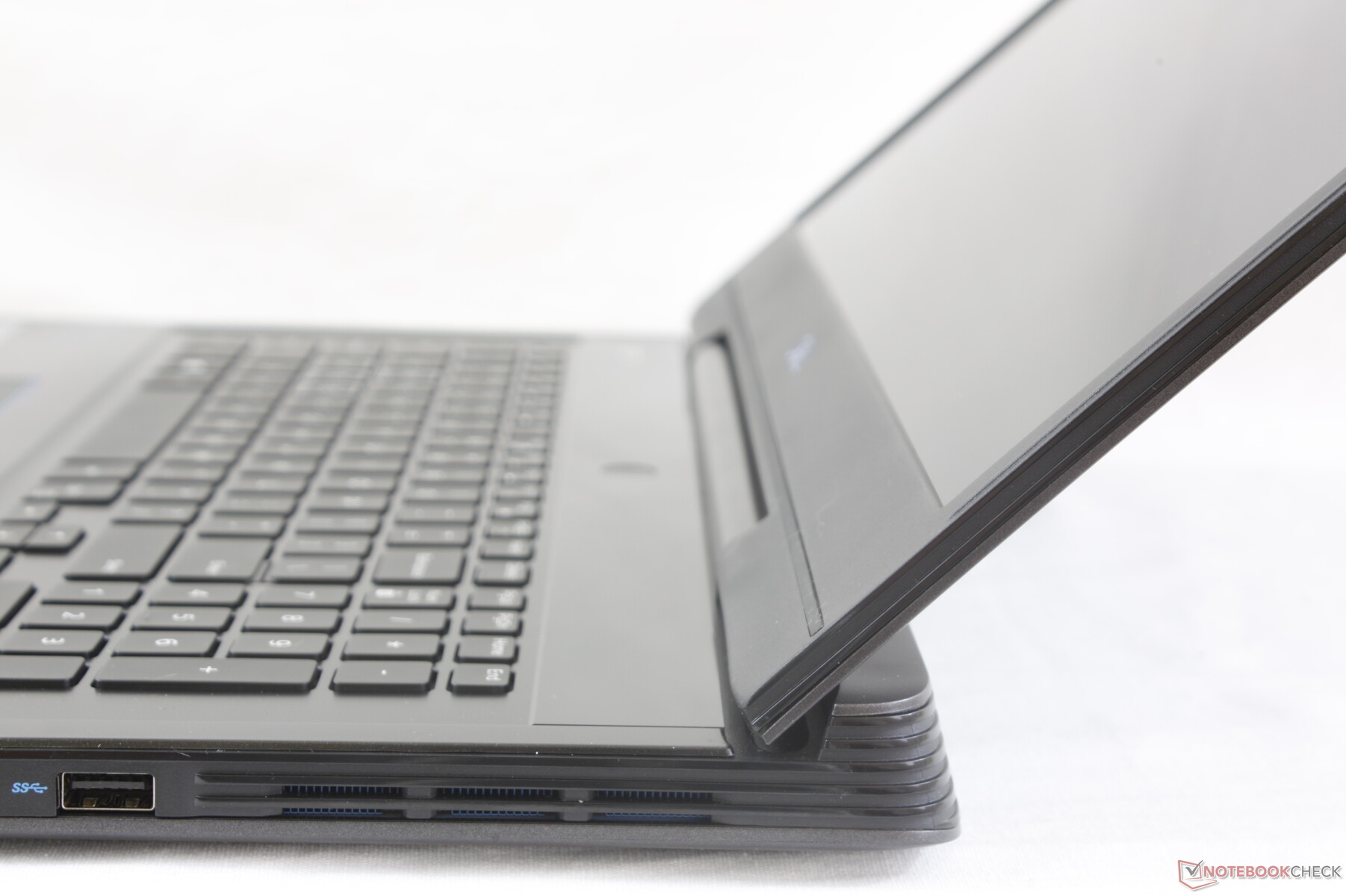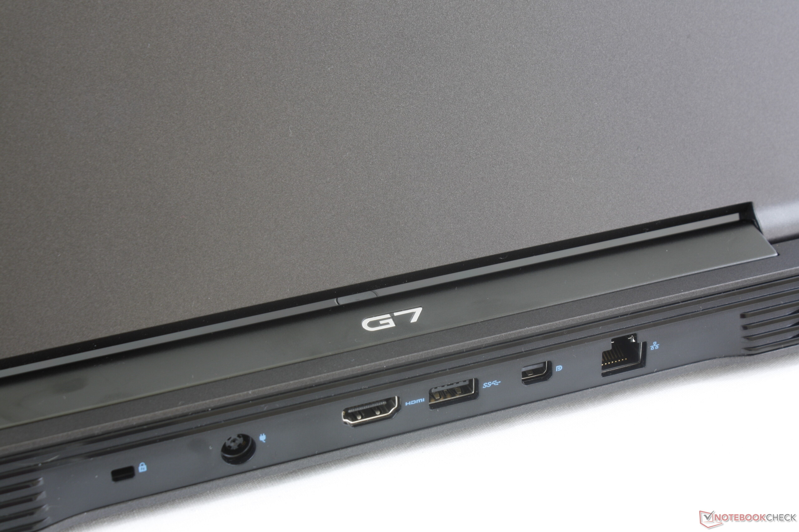 The narrower side bezels of the Dell G7 make it shorter in width than the competing MSI GL73 and Lenovo Legion Y740 which have thicker bezels. Because the larger rear ventilation extends the length of the chassis, however, the Dell laptop is longer in length than the aforementioned MSI and Lenovo. The overall chassis footprint is thus squarer than many other 17.3-inch gaming laptops.