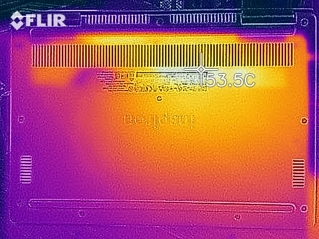 (-) The bottom heats up to a maximum of 53.5 °C / 128 F, compared to the average of 39.3 °C / 103 F