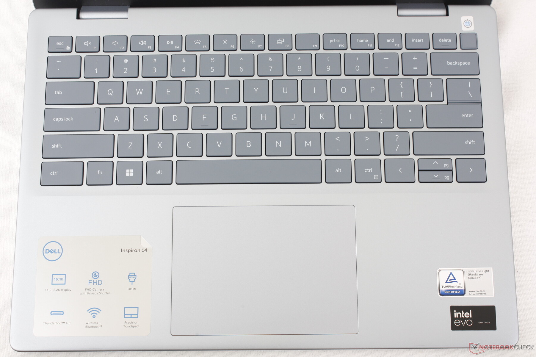 The Power key is smaller on this model when compared to the keyboards on other Inspiron models like the 7420 or 7435 2-in-1 while the rest of the keyboard remains the same. Key feedback is relatively soft and quiet save for the Space and Enter keys which are noticeably louder and firmer than the main QWERTY keys.