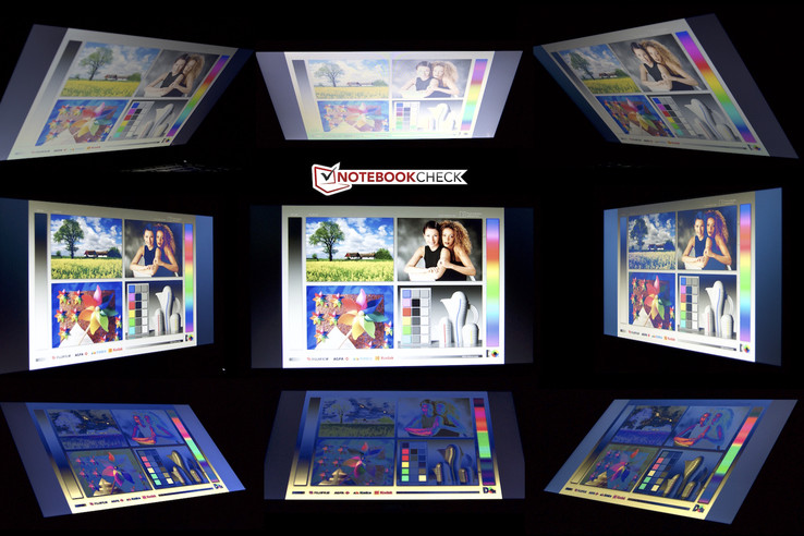 Dell equips our test model with a TN panel, and the viewing angles are very limited. Colors and brightness deviate heavily when you change your position vertically. However, you can usually adjust the display pretty well thanks to the wide opening angle (180 degrees). An IPS panel with wide viewing angles is an optional extra.