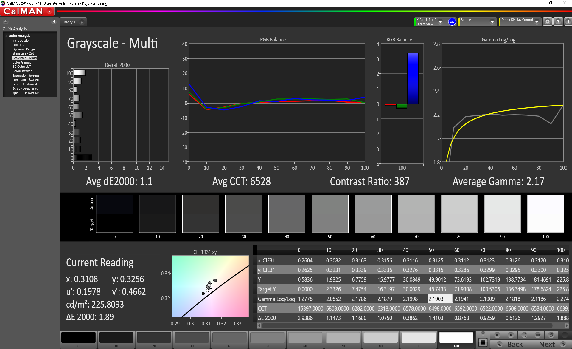 | Greyscale dE 2000 * | 12.6 | 2.7 79% | 1.42 89% | 1.98 84% | 3.49 72% |