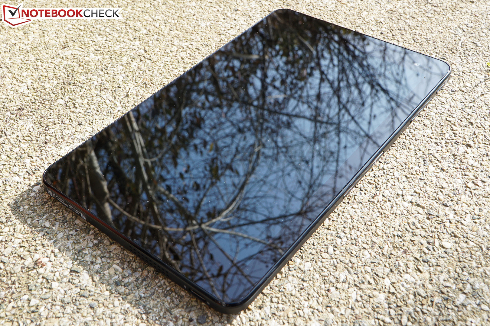 Our review sample is equipped with a glossy IPS panel in the 16:10 format, and has a resolution of 1920x1200 pixels. On an 8-inch screen diagonal, this equates to a relatively high pixel density of 283 PPI on paper and ensures a razor-sharp image in practice. A lower resolution panel with 1280x800 pixels that is installed in the cheapest configuration is optionally available.