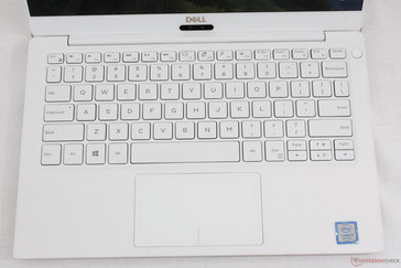 Dell has confirmed with us that both the backlit keyboard and trackpad have been transcribed untouched from the XPS 13 9360 albeit with a smooth clear plastic overlay on the Rose Gold SKU. The sizes of the trackpad (~10.5 x 6.0 cm) and individual keys (~1.6 x 1.6 cm) remain the same and so do the feedback and 1.3 mm travel depth.