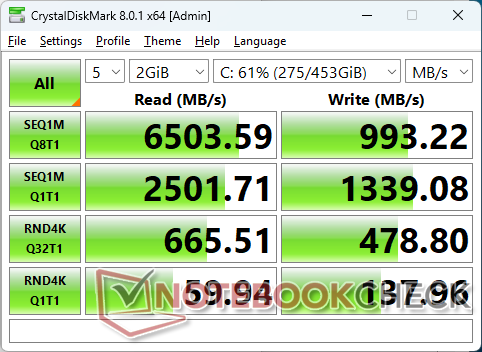 When compared to the OLED panel, the less expensive IPS panel can be slightly brighter at the center but otherwise slightly dimmer around the edges and corners due to poorer uniformity. Contrast ratio is still very good especially for an IPS panel at over 2000:1 and while Windows VRR is supported down to just 1 Hz when idling as opposed to 20 Hz or greater on most other laptops. Note that this feature is disabled by default and must be manually enabled.