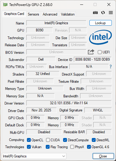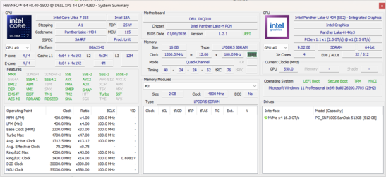 | Dell XPS 14 Core Ultra 7 355 Intel Core Ultra 7 355 ⎘ Intel Graphics 4 Xe3 Panther Lake iGPU ⎘ 16 GB Memory, 512 GB SSD | Amazon: List Price: 1600 USD | 1.5 kg | 15.2 mm | 14.00" 1920x1200 162 PPI IPS | |