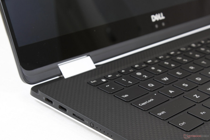 The Dell system is lighter, thinner, and smaller than the HP equivalent by several millimeters in each dimension. Users accustomed to handling an XPS 15 9550/9560/9570 will know exactly what to expect with the XPS 15 9575 as Dell has translated the design language almost perfectly for the 2-in-1 form factor. Both models show excellent build quality with minimal warping down the outer lid and keyboard base. We can't objectively rank one system better than the other in this regard.