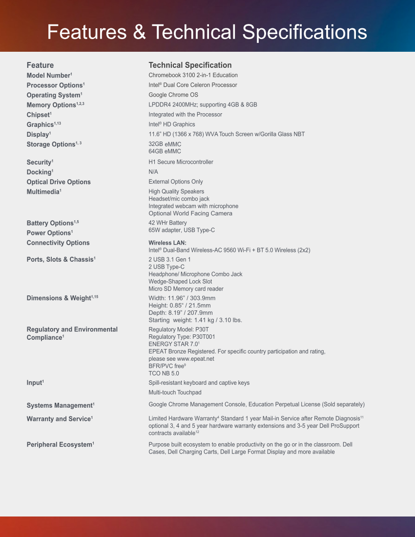 The refreshed 11.6-inch 3100, 11.6-inch 3100 2-in-1, and 14-inch 3400 Chromebooks were designed with this younger generation of students in mind. These systems sport 2x2 Intel WLAN cards and USB Type-C charging with the promise of over six years of Google Auto Updates. The OEM is claiming a battery life of up to 12 to 14 hours depending on the model.