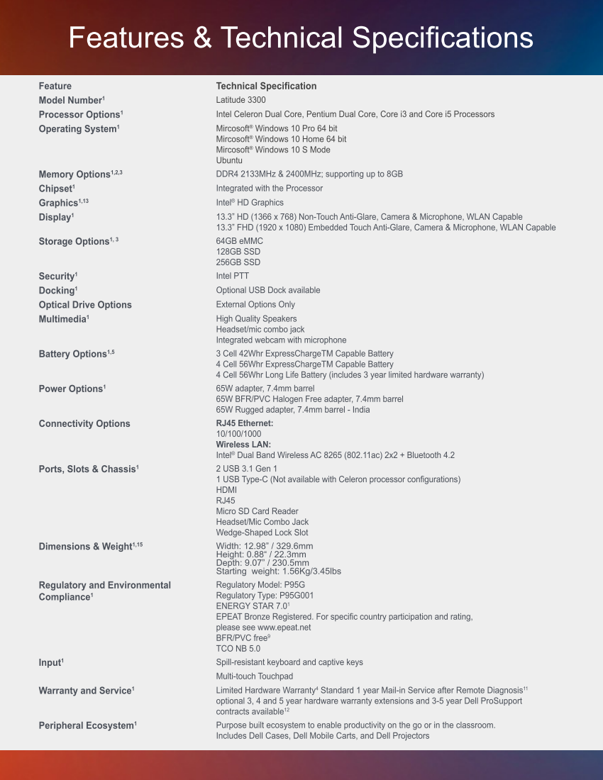 Outside of these Chromebooks, Dell will also offer a new and more powerful 13.3-inch Latitude 3300 Education model for students who may prefer to use Windows. The laptop features USB Type-C charging and a 1080p touchscreen with up to Core i5 processors compared to the passively-cooled Gemini Lake processors in the above Chromebooks.