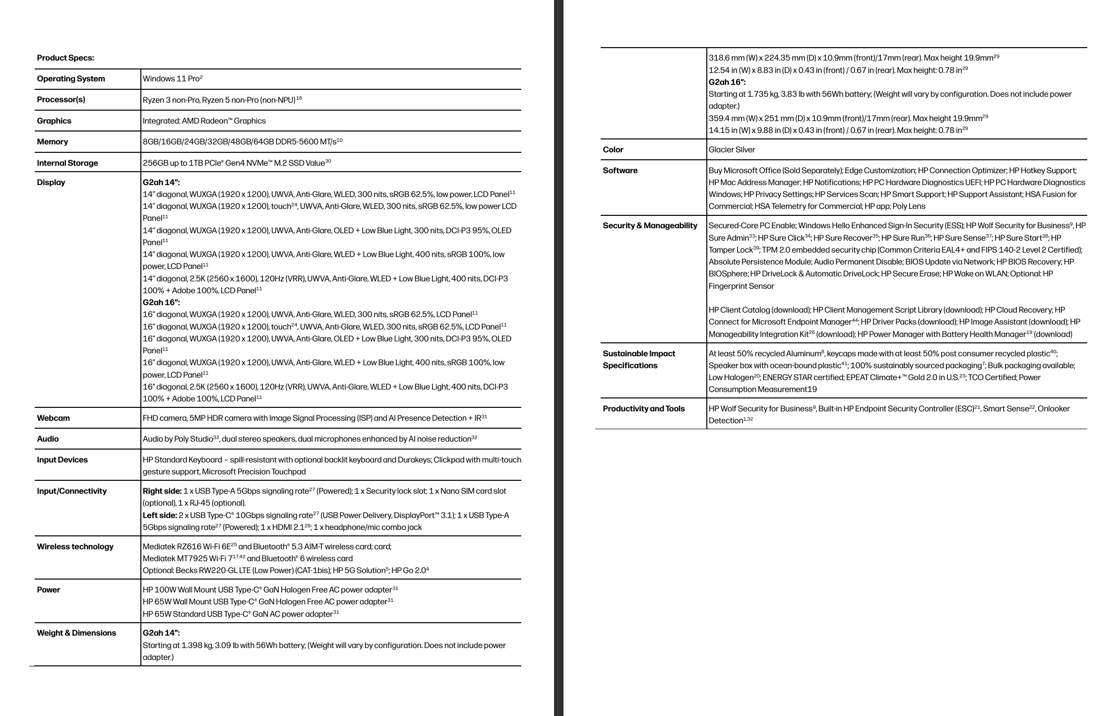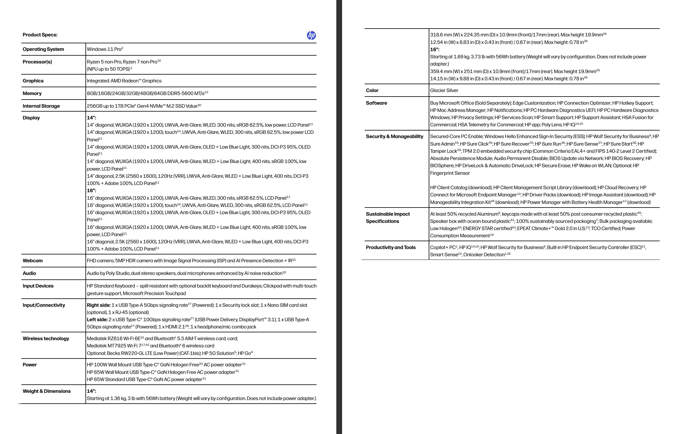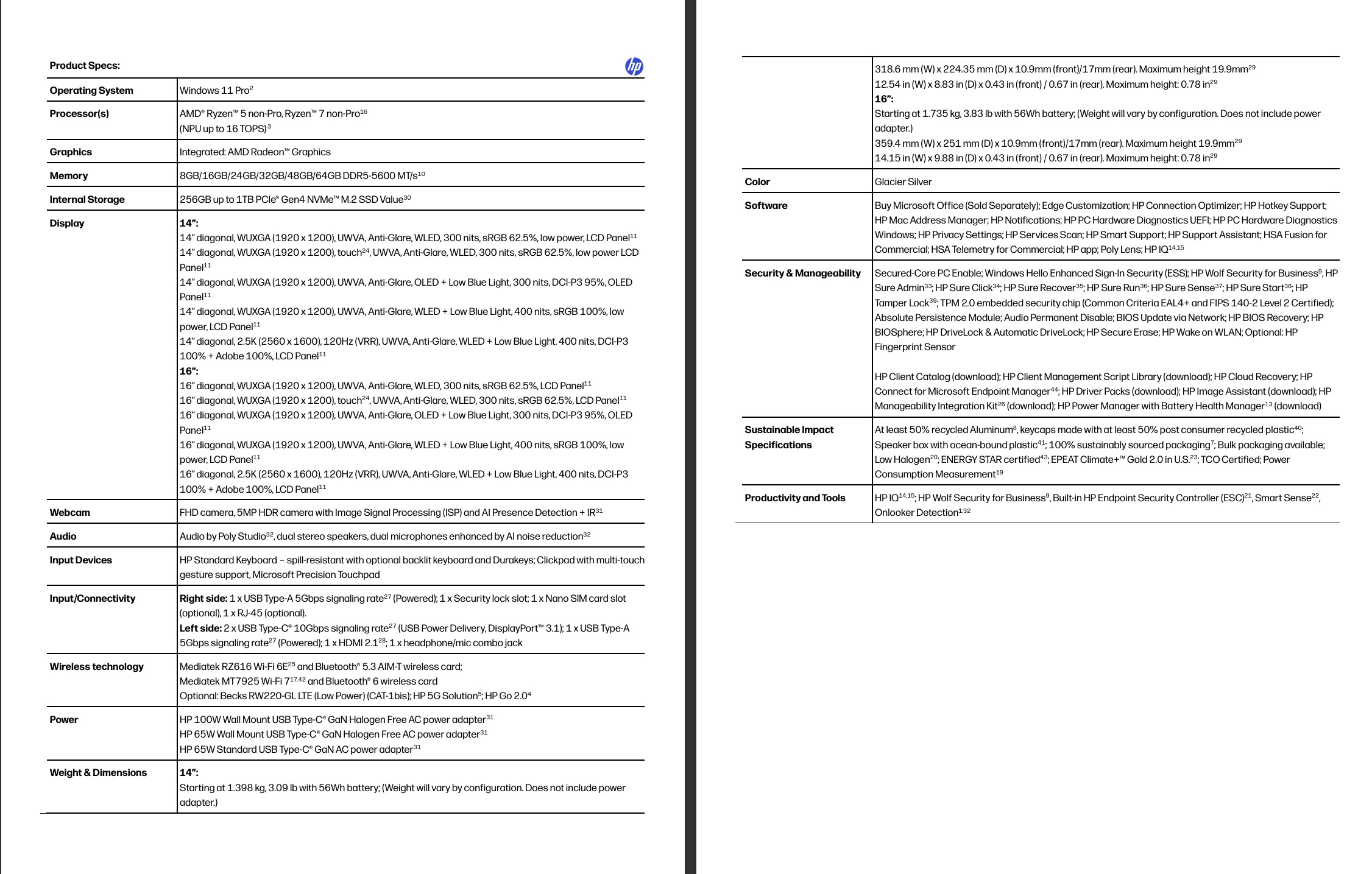 While customers can choose to save on storage and RAM, they can spend money on higher quality screens if they want. The base variants of the HP ProBook 4 series still feature cheaper WUXGA (1,920 x 1,200) panels with limited color gamut coverage, but the 14-inch and 16-inch versions will also be available with high quality 2.5K / WQXGA (2,560 x 1,600) LCD screens, with 120 Hz refresh rate, 400 cd/m² brightness and 100 percent AdobeRGB/DCI-P3 coverage.