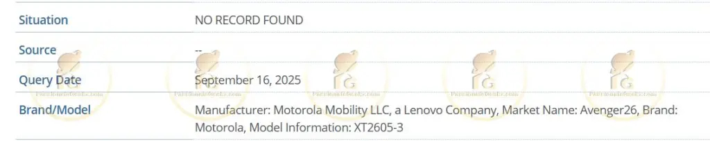 Now, Guglani has spotted Motorola developing a device bearing the model number XT2605-3. For the time being, this device has only appeared on IMEI databases. Nonetheless, it confirms that Motorola has codenamed the device 'Avenger', which we suspect will appear in subsequent leaks before an official launch occurs.