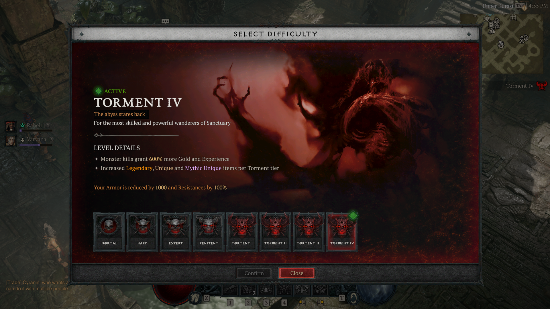 Plus, you can only have 5 paragon boards active at a time. On the one hand, this should prevent players from attaching all eight boards with the extra 100 Paragon levels; on the other, an artificial restriction on what a player can or cannot do with their character in a role-playing game is frustrating. Additionally, pushing past Pit 100 will be a chore for most classes/builds, effectively forcing you to play a ‘meta’ build whether you like it or not. The difficulty increase is more or less linear between the first 3 Torment tiers. However, the jump from Torment 3 to Torment 4 is a significant one. It will require your character to sport powerful gear with the right temper rolls and greater affixes. Thankfully, you have to grind only once every season (or just one on the Eternal realm), as the paragon level progression carries over to all subsequent characters. With a little elbow grease, you can easily get to paragon level 200 at Torment 3, but the same can’t be said for the last 100 levels.