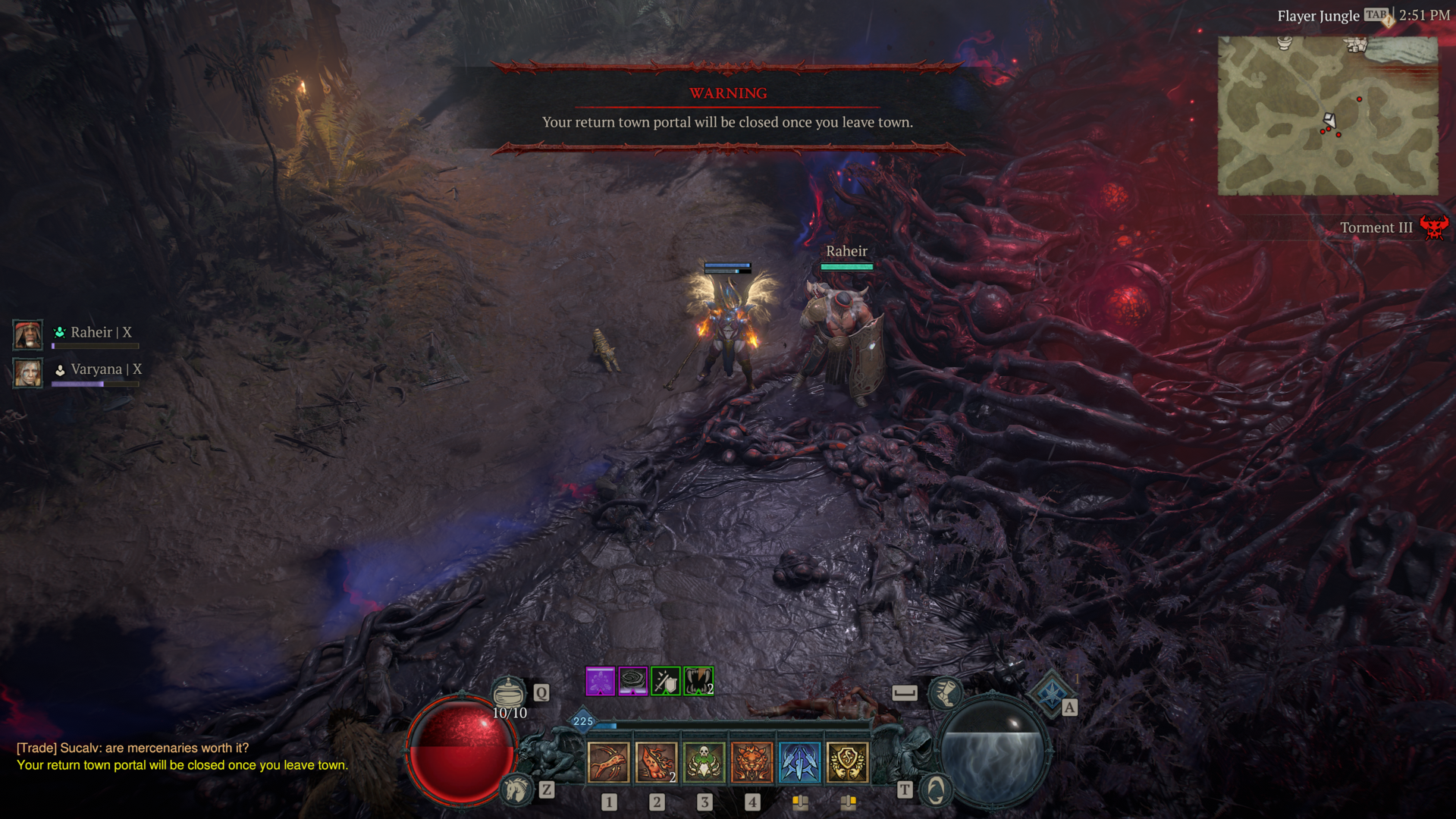 Mercenaries, on the other hand, aren’t nearly as useful. Unlike Diablo 2, where you could kit out your merc with leftover gear from your build, Diablo 4 mercenaries are support units that occasionally cast a skill or two. You can have one active mercenary alongside you and enlist a second as backup. The backup character can cast one skill based on pre-determined conditions. There are only four mercenaries to choose from, all of which have to be unlocked via separate quests. Each mercenary comes with a healthy mix of abilities/passives. It’s a healthy mix of defence, crowd control and aggression, and I quite enjoyed mixing and matching different combinations. Further in the game, you can barter with mercenaries in a central hub called “The Den”.