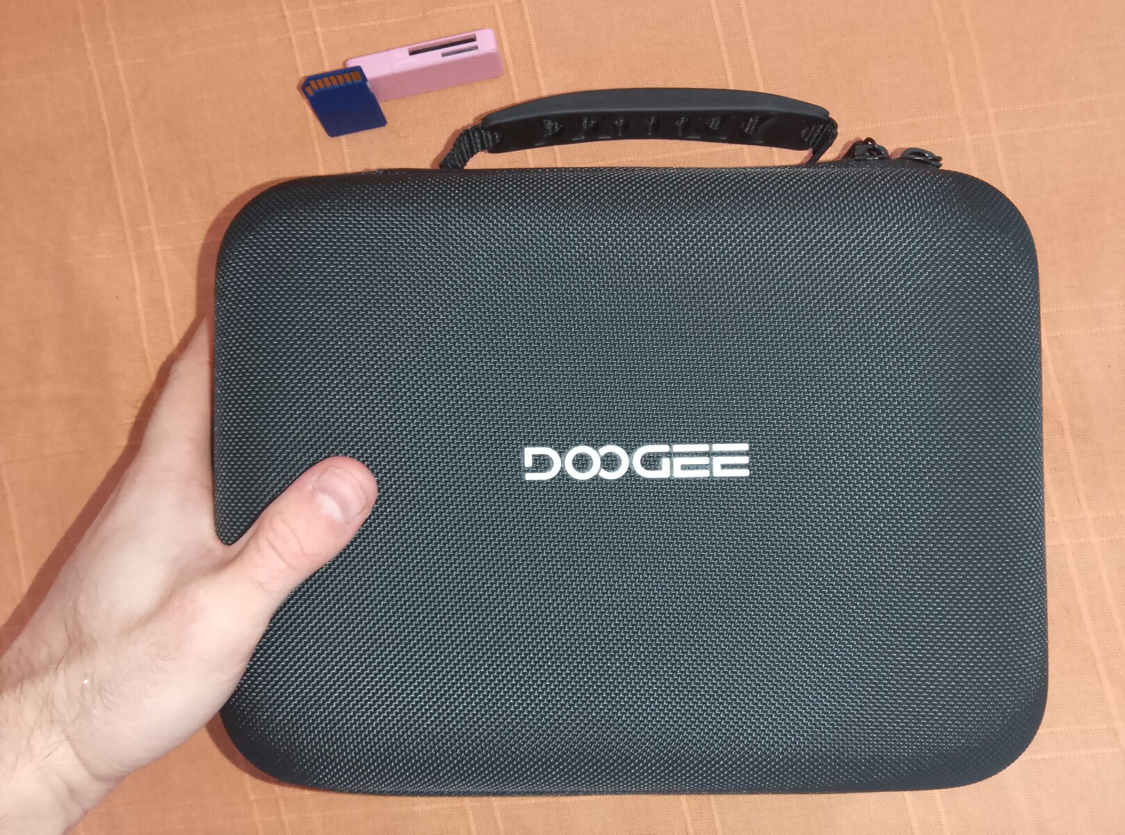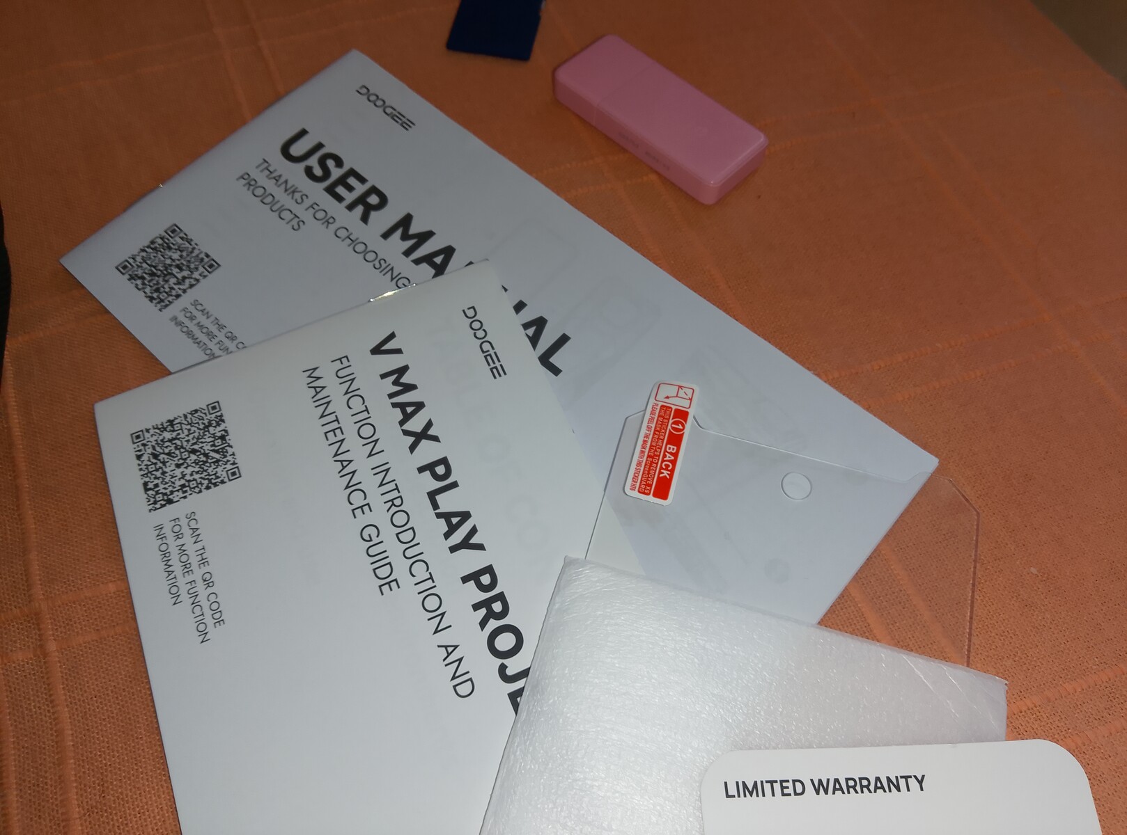 In addition to a regular cardboard box, ensuring the phone's safety on its way to the user is a black plastic travel case. Apart from a V Max Play, the case houses a small 45-W charger, a USB-C to USB-C cable, a hard display protector, various information and warranty booklets, and a hard protective case slash phone holder - a large piece of plastic that protects the Doogee phone's back, bottom, left and right, with a handle on one of its sides. This is the base set of goodies; those ready to pay a little more also get a small Doogee-branded Bluetooth speaker and a stand to hopefully make using the V Max Play as a projector a little easier.