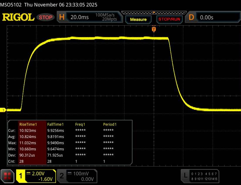| 20.6 ms ... rise ↗ and fall ↘ combined | ↗ 10.8 ms rise | |