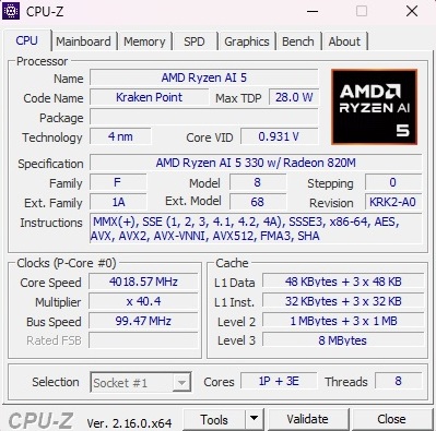 The Ryzen AI 5 330 is part of the Krackan Point 2 generation and features four Zen 5 cores (4 nm) capable of handling eight threads simultaneously. In our CPU benchmarks, the AI 5 330 not only falls behind its siblings, the AI 5 340 and AI 7 350, which is expected, but also trails the Core Ultra 7 255U and even the Core 7 150U found in the previously tested IdeaPad Slim 5 16. The AMD model does, however, offer more consistent performance overall, as shown in the Cinebench loop.