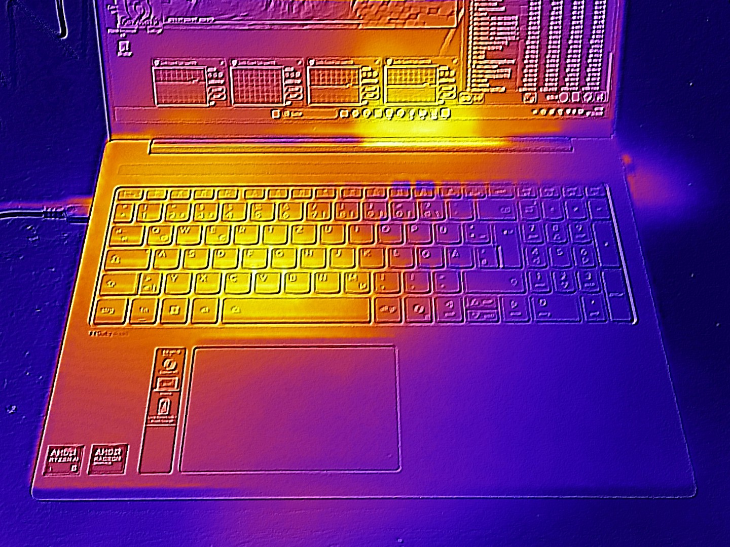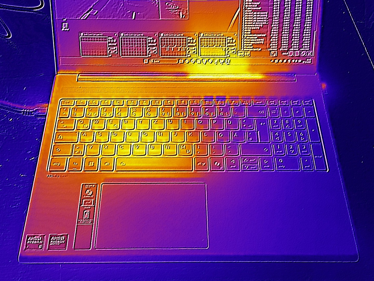 (+) The palmrests and touchpad are cooler than skin temperature with a maximum of 29 °C / 84.2 F and are therefore cool to the touch.