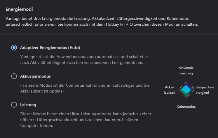 | Mode | Battery Saver | Adaptive (Auto) | Performance |