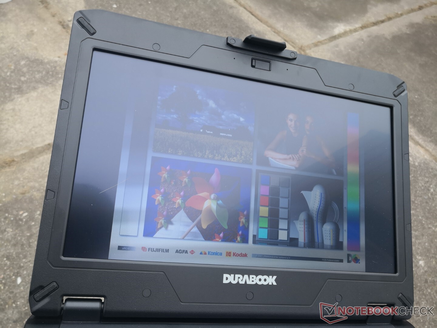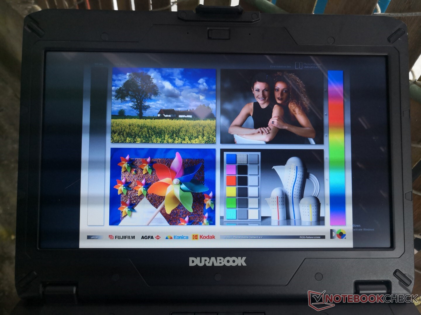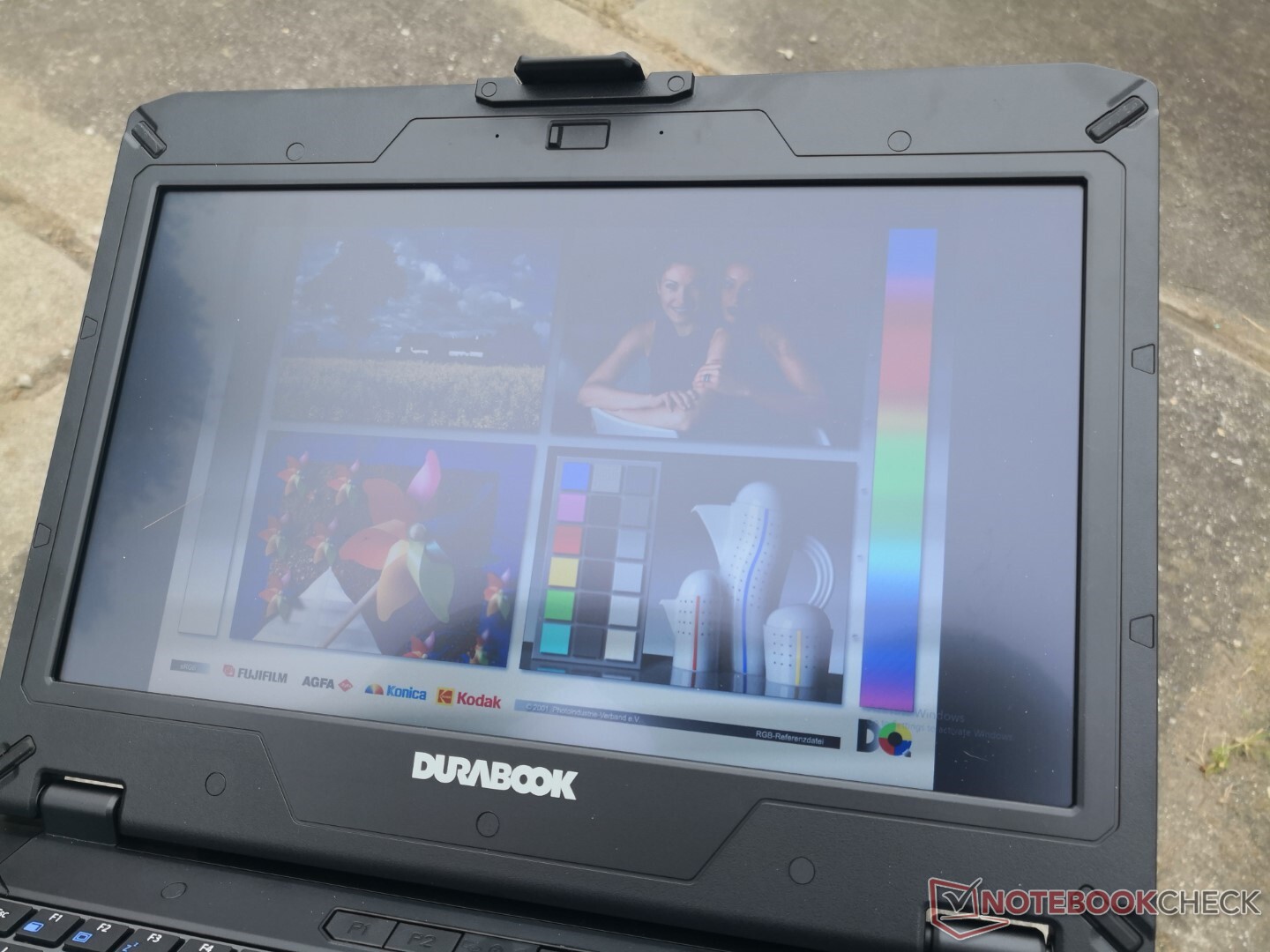 The best aspect of the display is its very bright backlight of over 1000 nits to be more than two times brighter than popular consumer laptops like the Dell XPS or MacBook Pro. If you intend to use this laptop outdoors frequently, then the extra brightness will certainly help. Contrast and colors are otherwise average at best which is to be expected for a rugged system where durability takes precedence over color accuracy.
