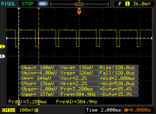 | PWM Frequency (Hz) | 304.9 ? | 301.2 ? | 694 ? | 763 | 877 ? | |