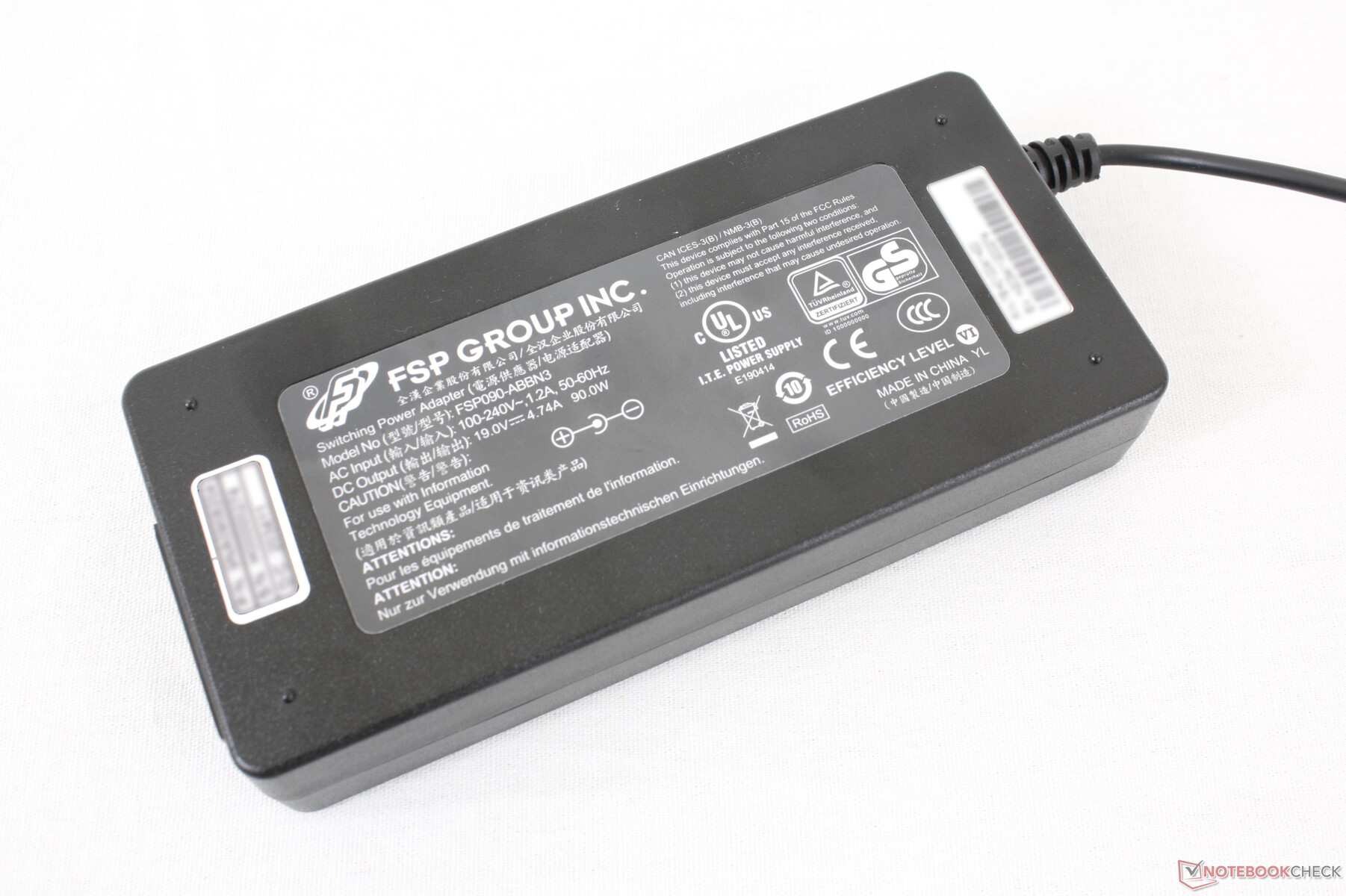 Charging the main battery from empty to full capacity takes about 1.5 hours with the included proprietary AC adapter. Users can also recharge the laptop via USB-C.