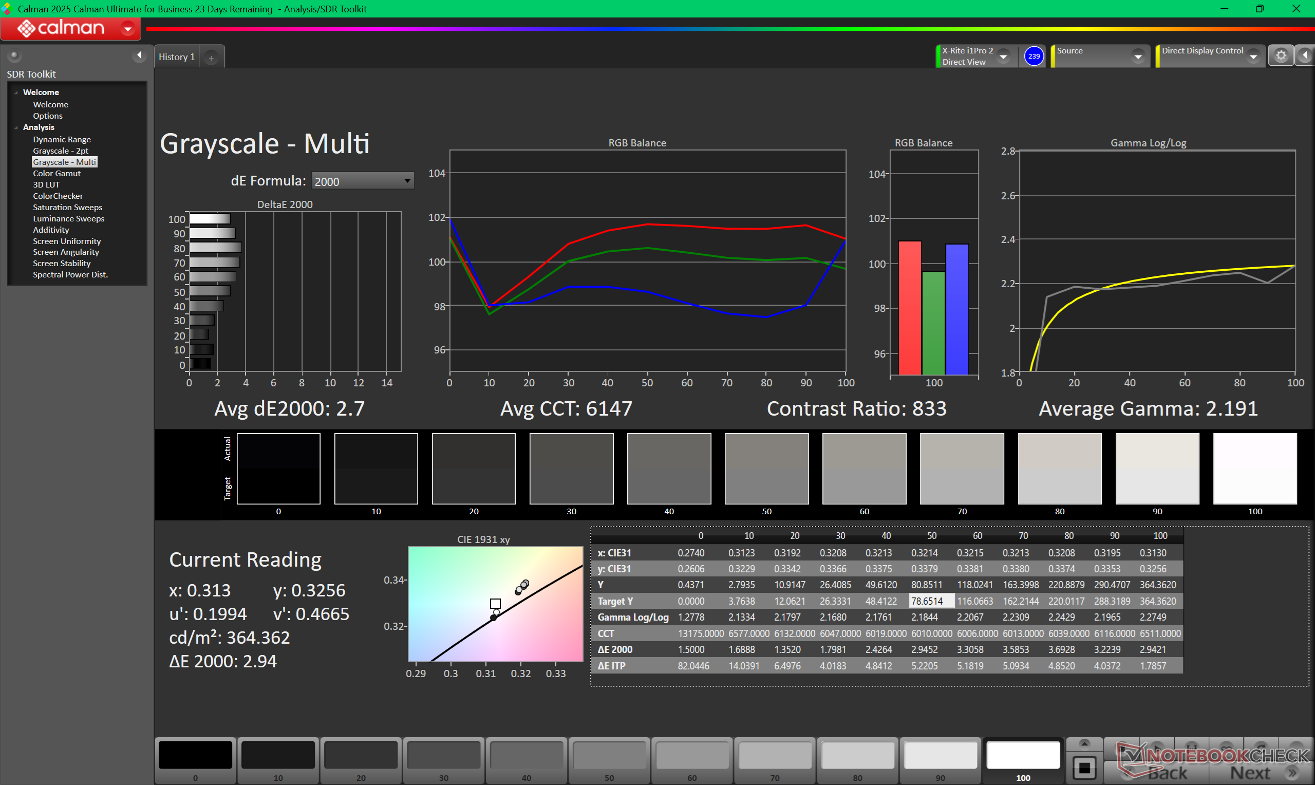 ΔE Greyscale Calman: 2.7 | ∀{0.09-98 Ø5}
