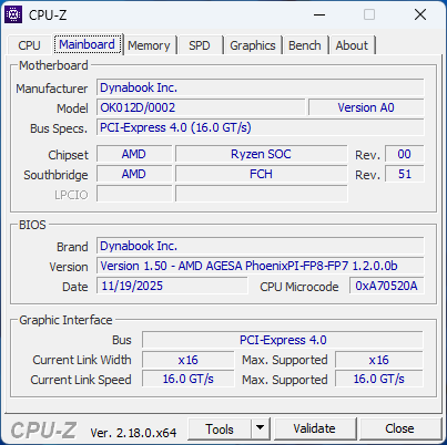 | Dynabook Tecra A60 A65-M R7 250, Radeon 780M, Samsung PM9C1 MZVL8512HELU, IPS, 1920x1200, 16" | LG Gram Pro 16Z90TS-G.AU89G Core Ultra 7 256V, Arc 140V, Samsung PM9A1a MZVL21T0HDLU, IPS, 2560x1600, 16" | Lenovo ThinkPad T16 Gen 4 21QQS06M00 Ryzen AI 7 PRO 350, Radeon 860M, SK hynix PC801 HFS001TEJ9X162N, IPS, 1920x1200, 16" | HP EliteBook 8 G1a 16 AI Ryzen AI 7 PRO 350, Radeon 860M, Micron 3500 MTFDKBA512TGD, IPS, 1920x1200, 16" | Dell 16 Premium DA16250 Ultra 7 255H, GeForce RTX 5070 Laptop, Kioxia BG6 KBG6AZNV1T02, OLED, 3840x2400, 16.3" | Asus ExpertBook B5 B5605CCA Ultra 5 225H, Arc 130T, Micron 2500 MTFDKBA512QGN, IPS, 2560x1600, 16" | |