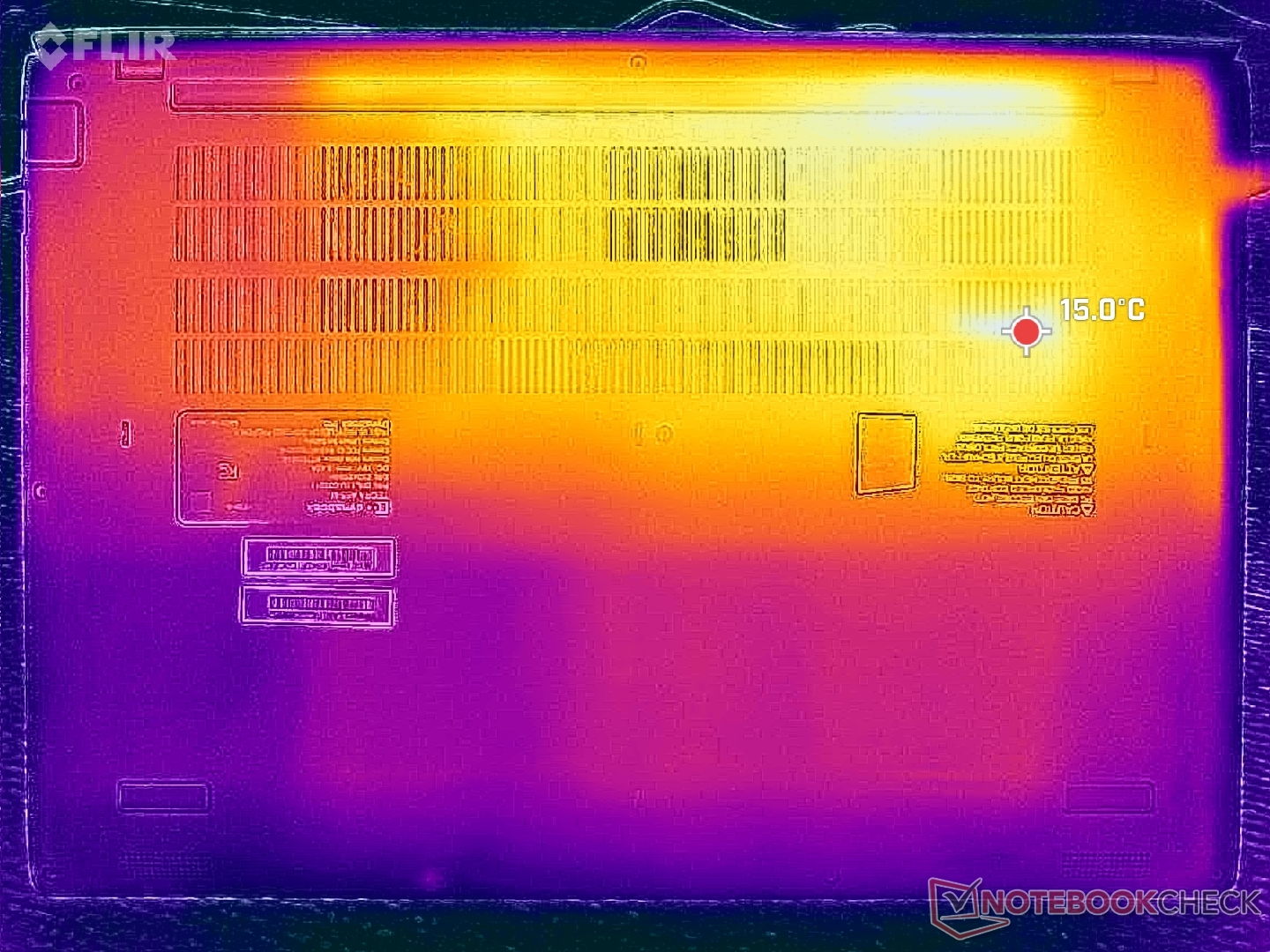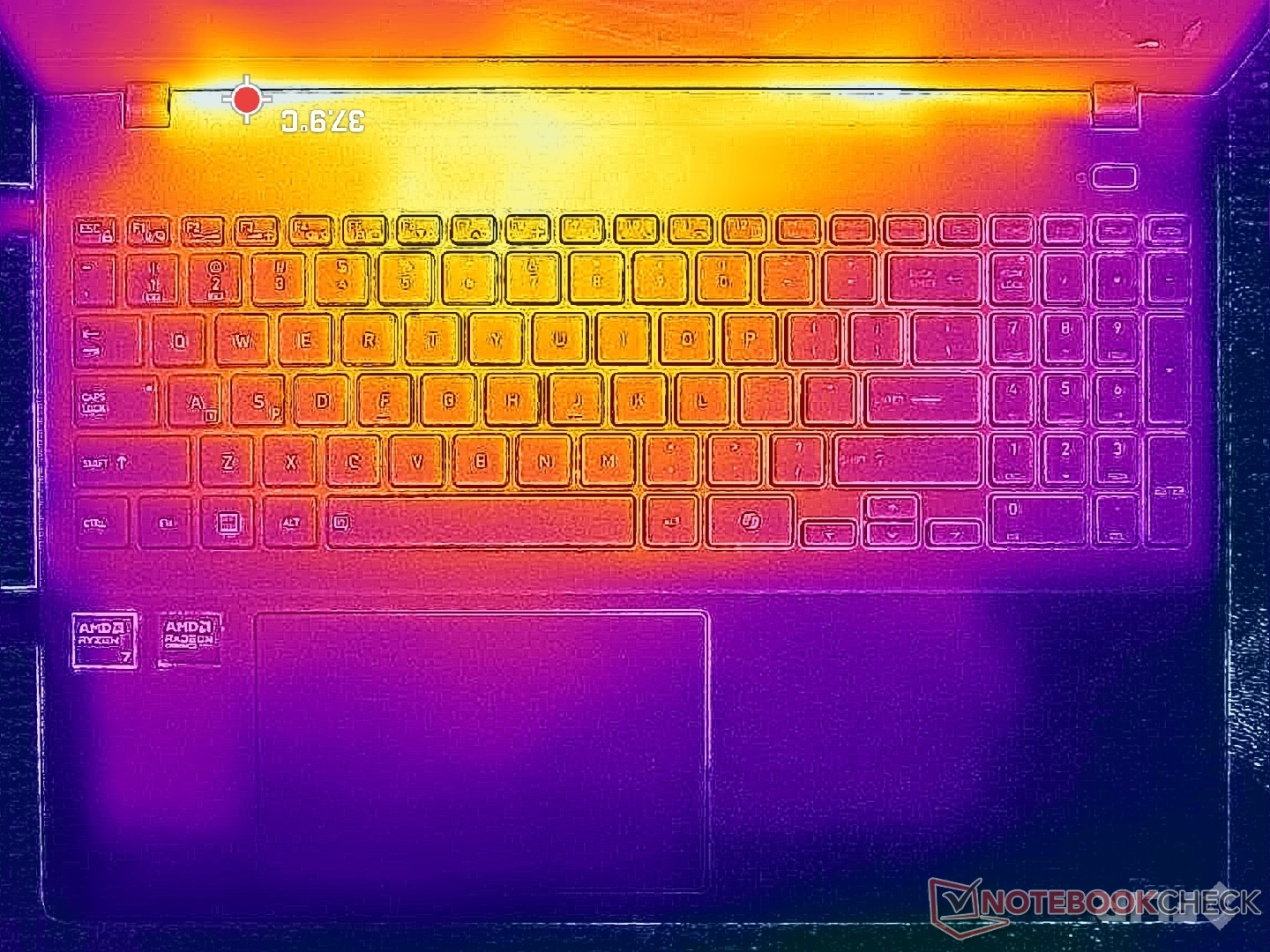 (+) The palmrests and touchpad are cooler than skin temperature with a maximum of 21.6 °C / 70.9 F and are therefore cool to the touch.