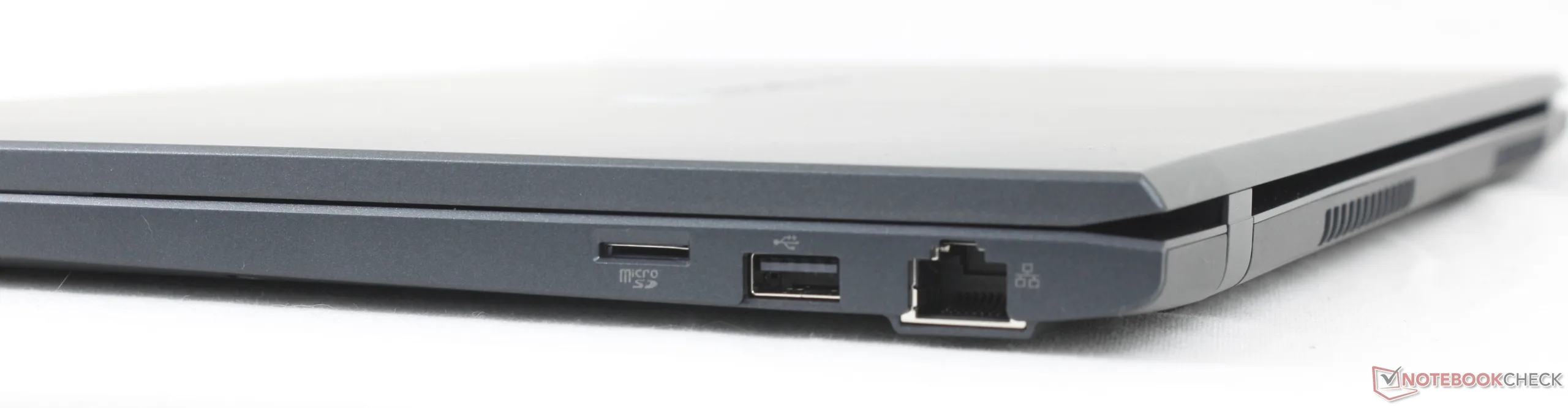 There is a respectable number of integrated ports including RJ-45 and multiple USB-A ports unlike on the EliteBook 8 G1a 16. However, the ports along the left edge can feel quite cramped.