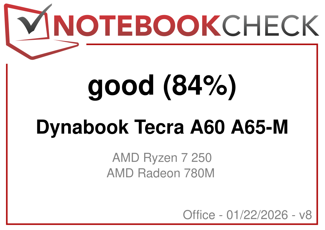 | Dynabook Tecra A60 A65-M AMD Ryzen 7 250 ⎘ AMD Radeon 780M ⎘ 16 GB Memory, 512 GB SSD | Amazon: $1,048.94 List Price: 1300 USD | 1.7 kg | 19.9 mm | 16.00" 1920x1200 142 PPI IPS | |