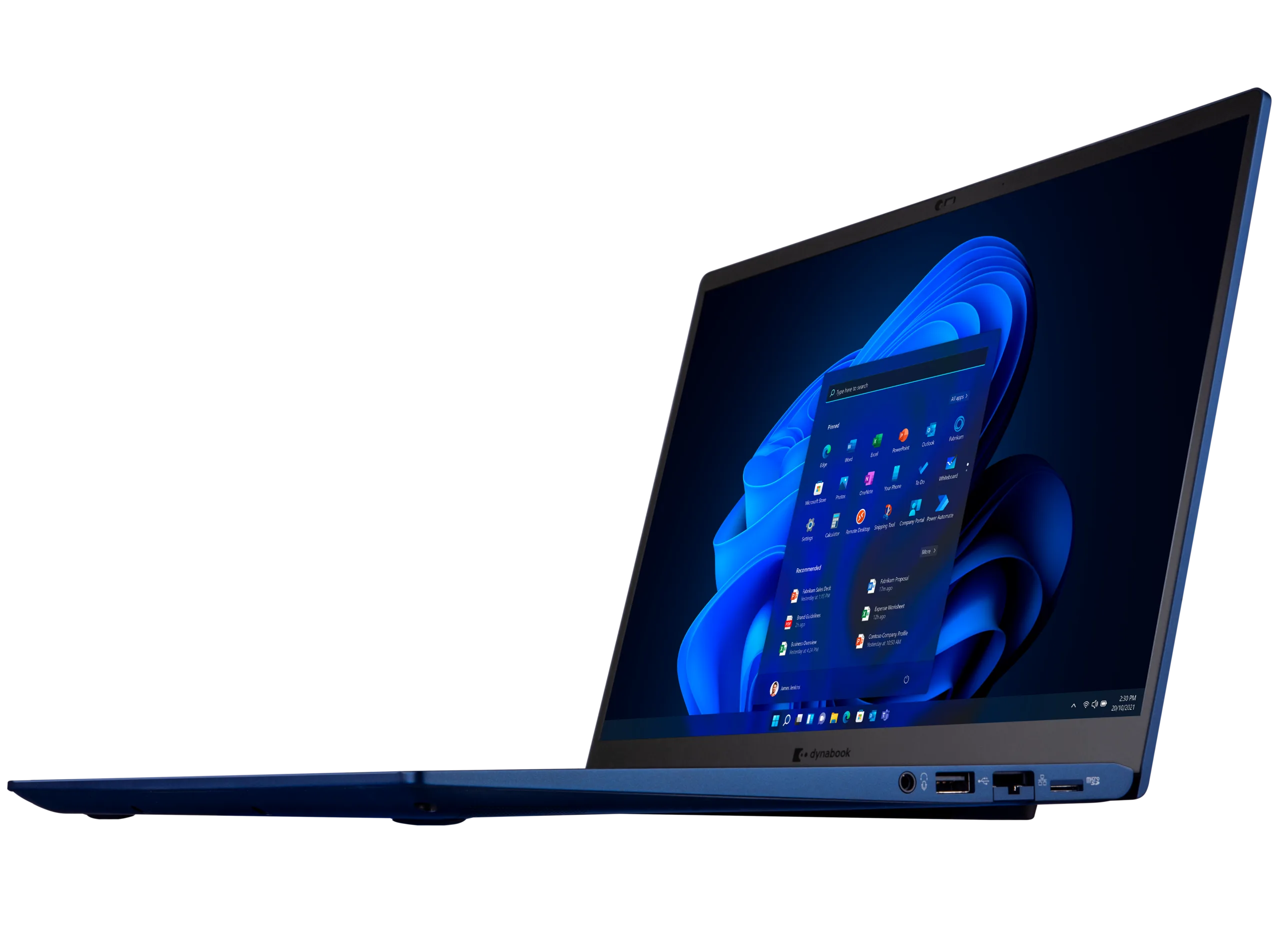 The chassis profile now measures 15.9 mm and the notebook weighs only 2.3 lbs. Despite its ultrathin look, the stylish Tech Blue magnesium alloy chassis of the Portégé X40L-K is designed to meet the rigorous MIL-STD-810H standards for strength and durability