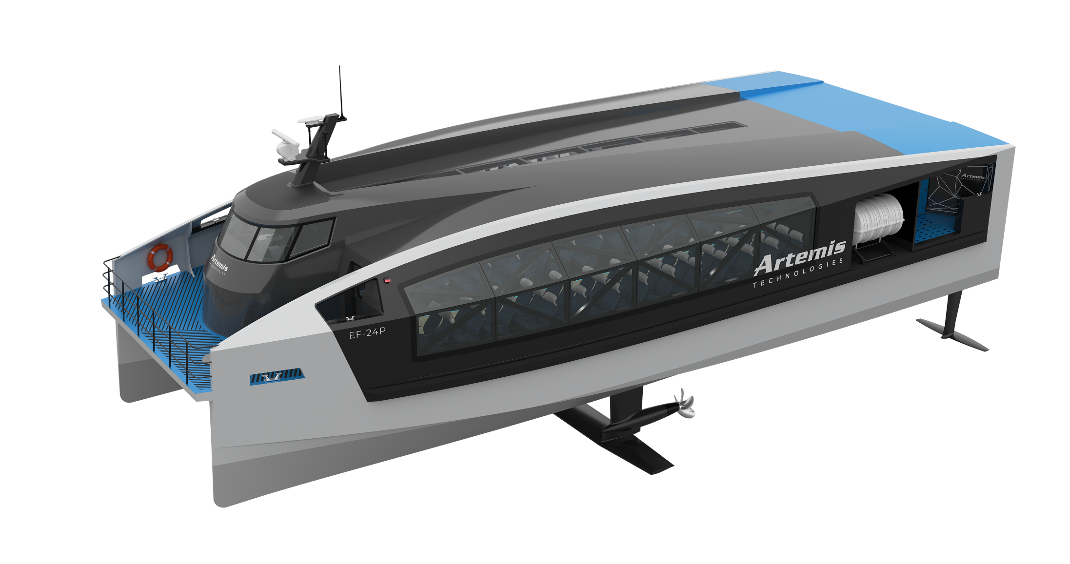 Artemis recently announced the successful delivery of three EF-24 hydrofoil electric ferries to Beflast. The Artemis EF-24 Passenger is considered a high-speed ferry and uses hydrofoils to move primarily above the water, similar to the Boeing 929 (jetfoil), which is mainly used in East Asia, but significantly larger.