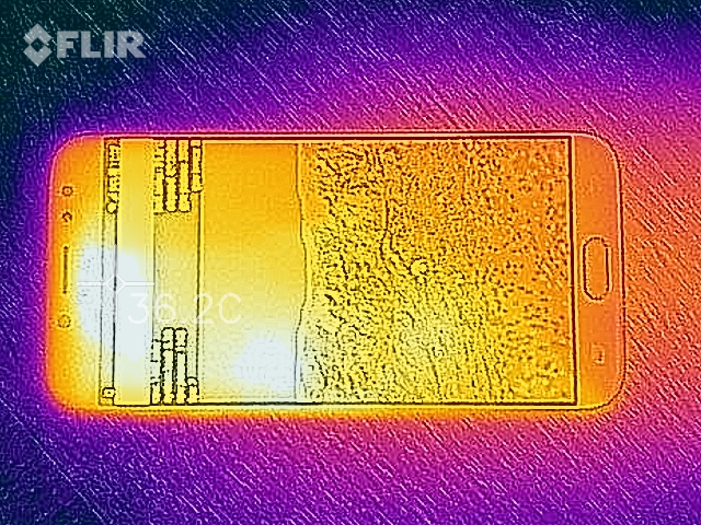 The surface temperatures of the entire Samsung Galaxy-J series are flawless, and during constant load the smartphones do not even become warm to the touch. We test the performance stability of the SoC with the GFXBench battery test. In the easier T-Rex test (OpenGL ES 2.0) as well as the more demanding Manhattan test (OpenGL ES 3.1), the Galaxy-J models show consistent performances. We did not notice any throttling in any of the test units.