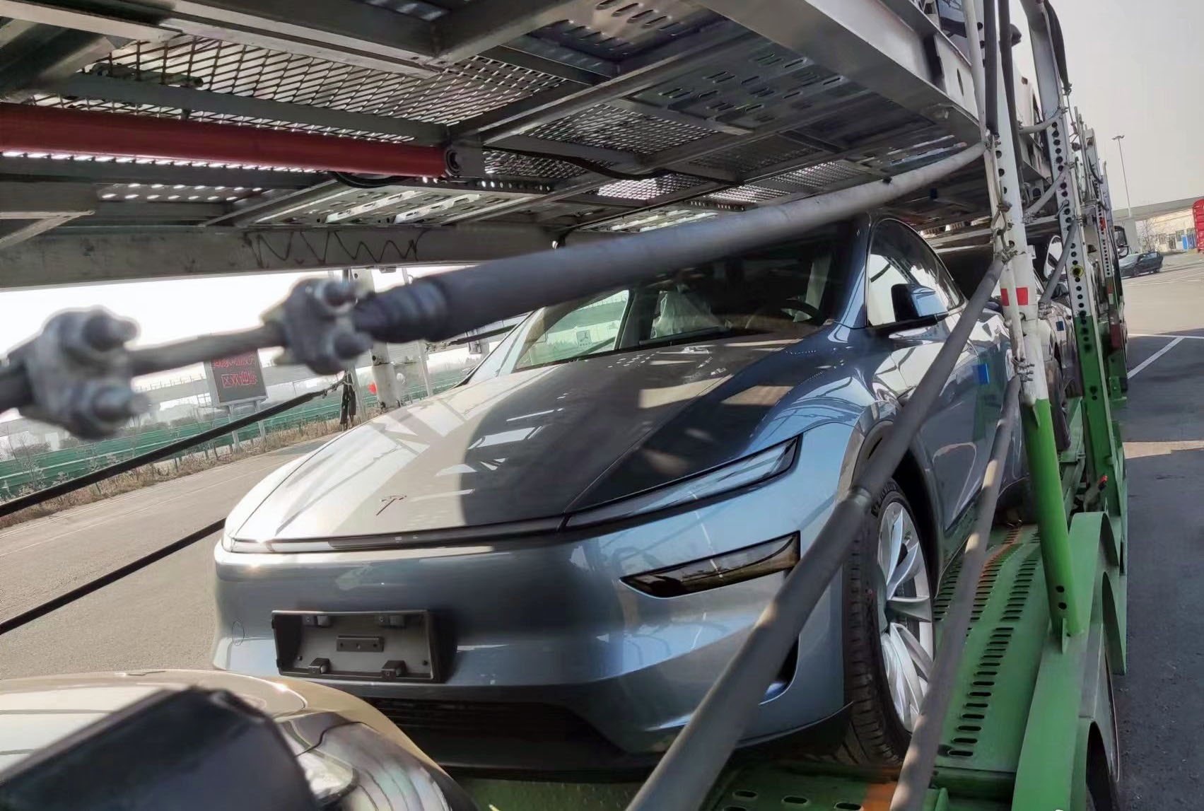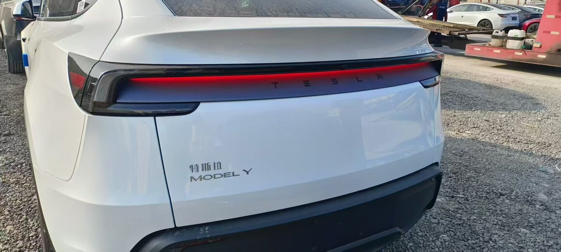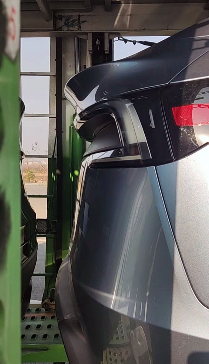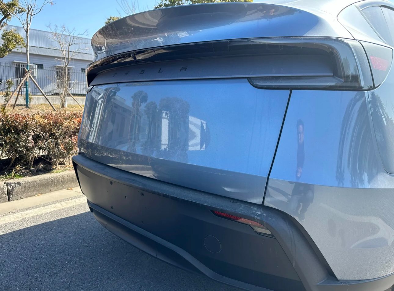 On one of those trucks, someone managed to get a good 2024 Model Y vs 2025 Model Y comparison photo, showing up the difference in their rear design. The rear window now extends further thanks to a much less pronounced spoiler edge overhanging Tesla's unique reflective light bar that runs across the back of the Juniper refresh.
