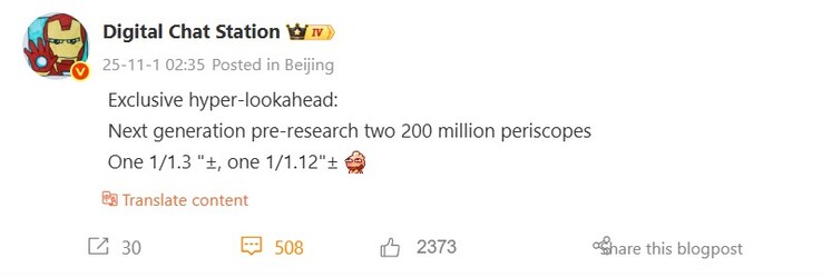 Looking far ahead into the future, Chinese leaker Digital Chat Station claims in a recent Weibo post that a potential Oppo Find X10 Ultra prototype will probably not go into mass production until 2027 as long as the project is not scrapped beforehand. According to the post, Oppo is currently experimenting with a dual 200 MP periscope telephoto system consisting of a 1/1.3-inch sensor and a 1/1.12-inch sensor. In addition to a classic Samsung sensor such as the ISOCELL HP2, the sensor sizes point to the new Sony 200 MP sensor, which is expected to launch in early 2026 as the LYT-910 and is also expected in the Vivo X300 Ultra.