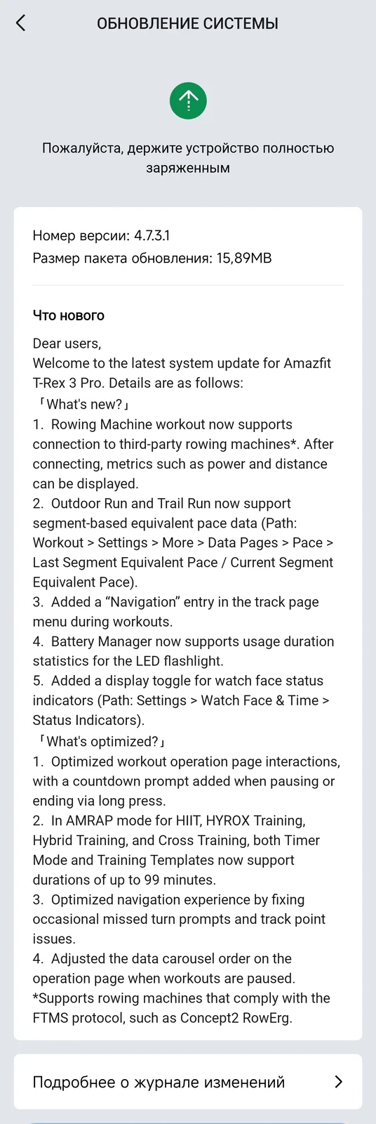 As is typical with these smartwatch updates, firmware version 4.7.3.1 appears to be rolling out in phases to users of the T-Rex 3 Pro (curr. $399.99 at Amazon). When it becomes available to you, you will be able to trigger the installation process via the Zepp app.